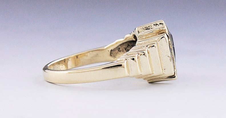 The ring is in great overall condition. There is some surface wear to the sapphire, but nothing excessive or noticeable. The sapphire and diamonds are securely set. There are no breaks and no repairs.