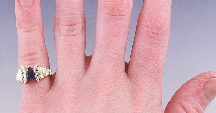 Beautiful 14k Yellow Gold Blue Sapphire and Diamond Ring Size 6