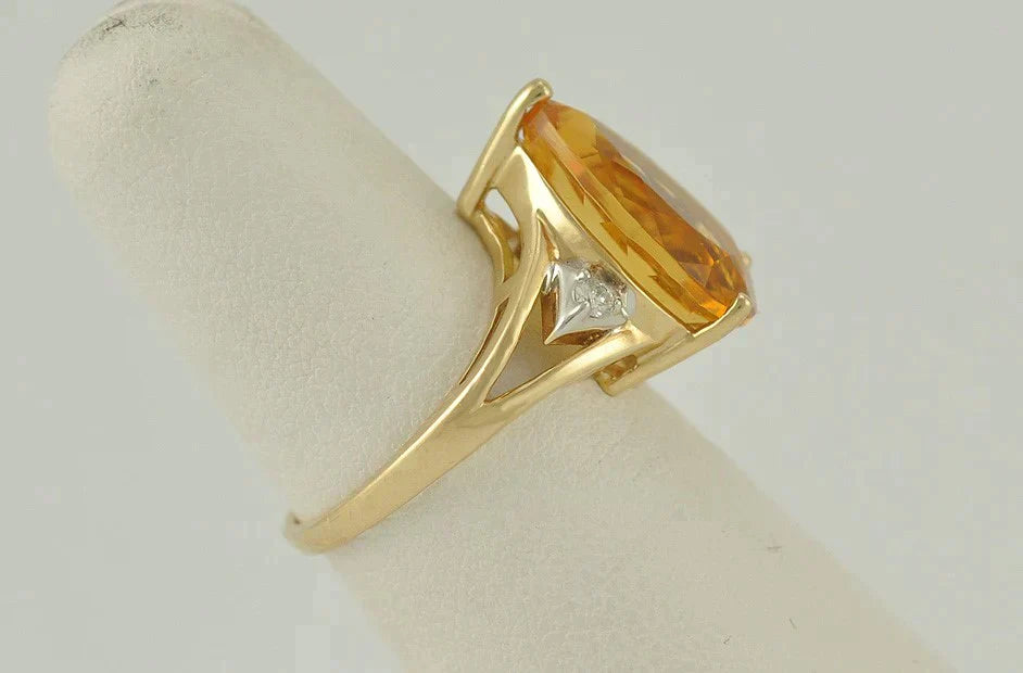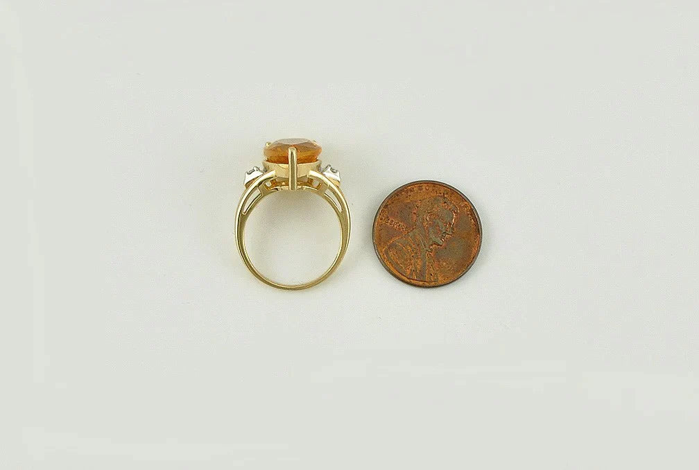 Beautiful 14K Yellow Gold Citrine and Diamond Ring Size 6