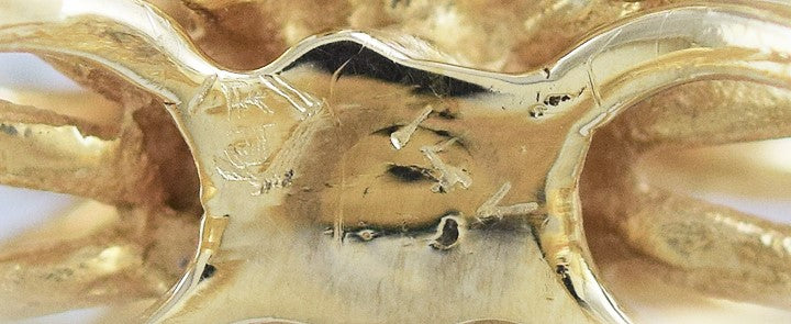 The band is stamped and guaranteed 14k and has a maker's mark that looks like a G inside a diamond.