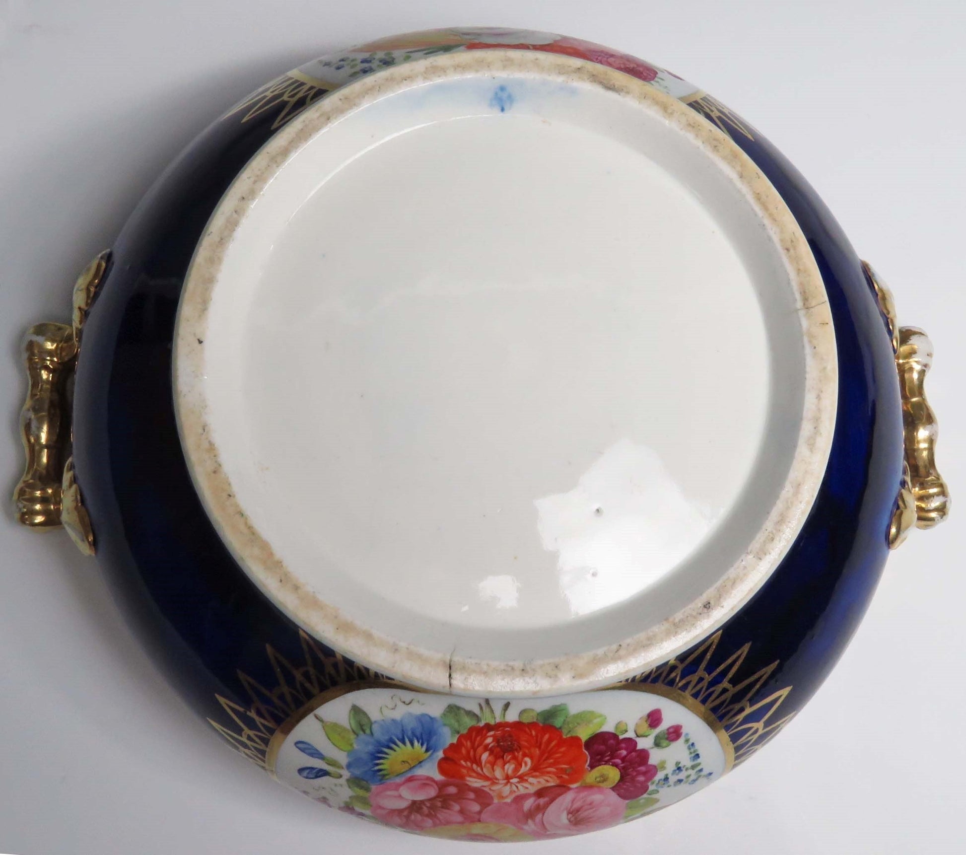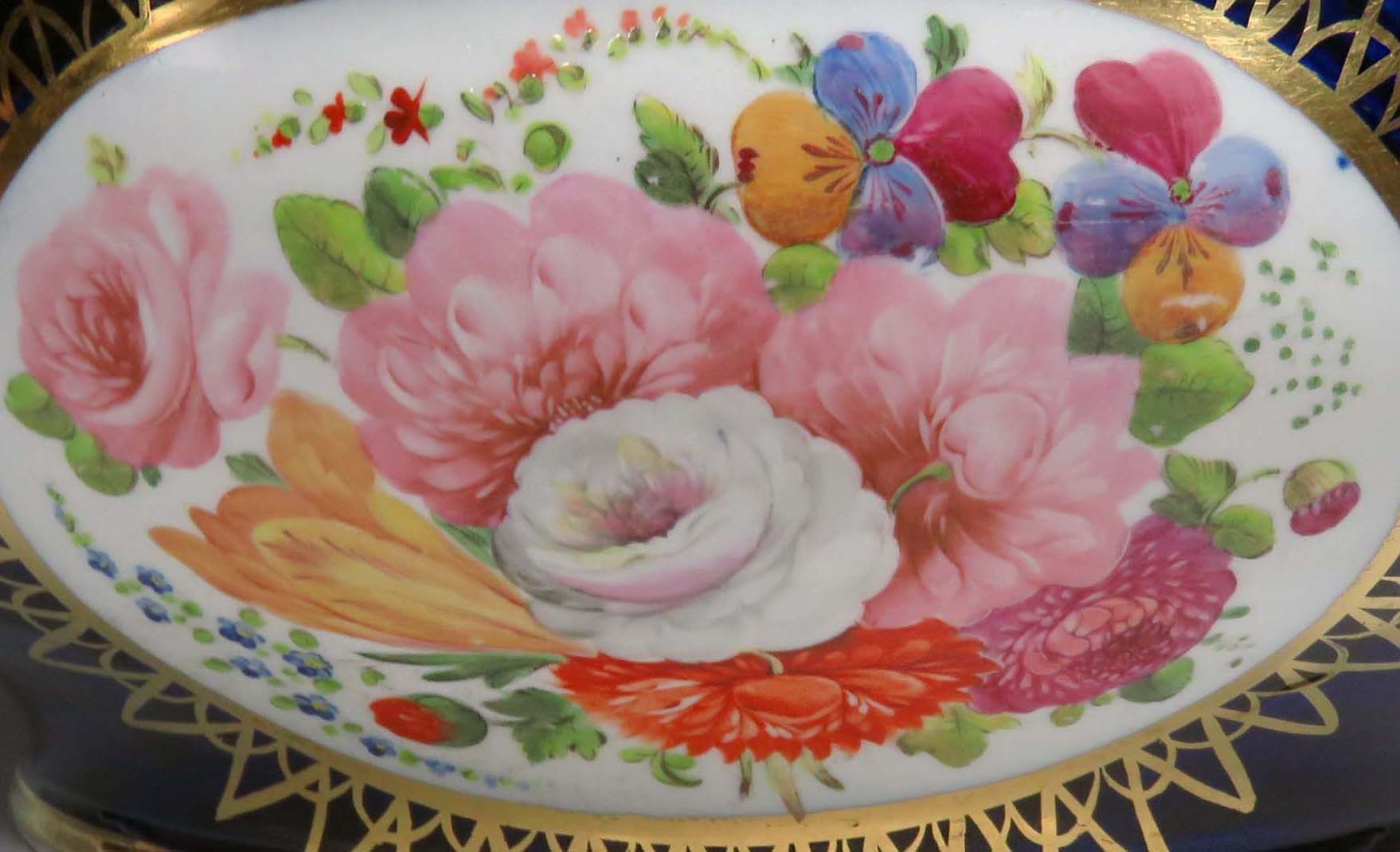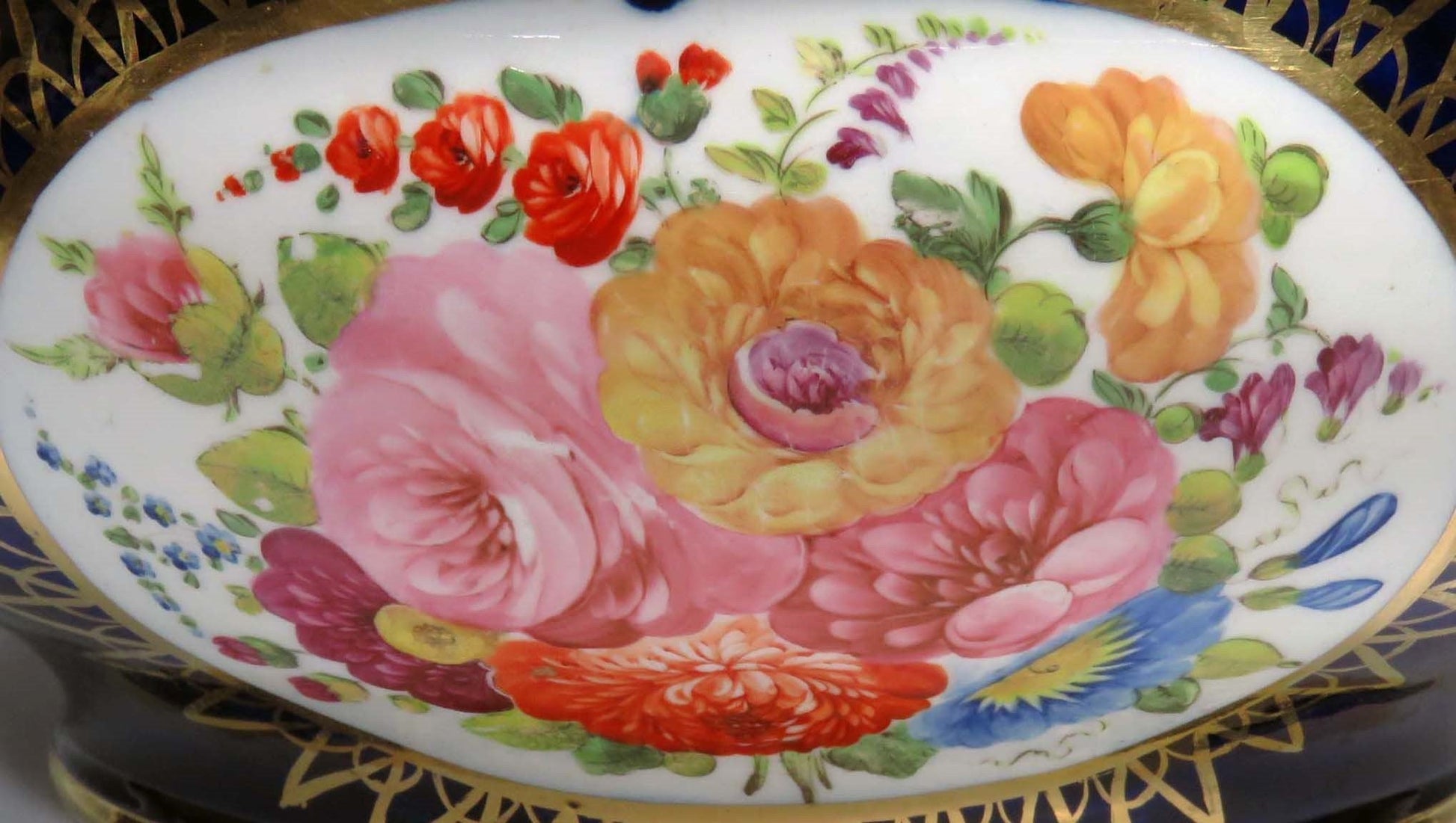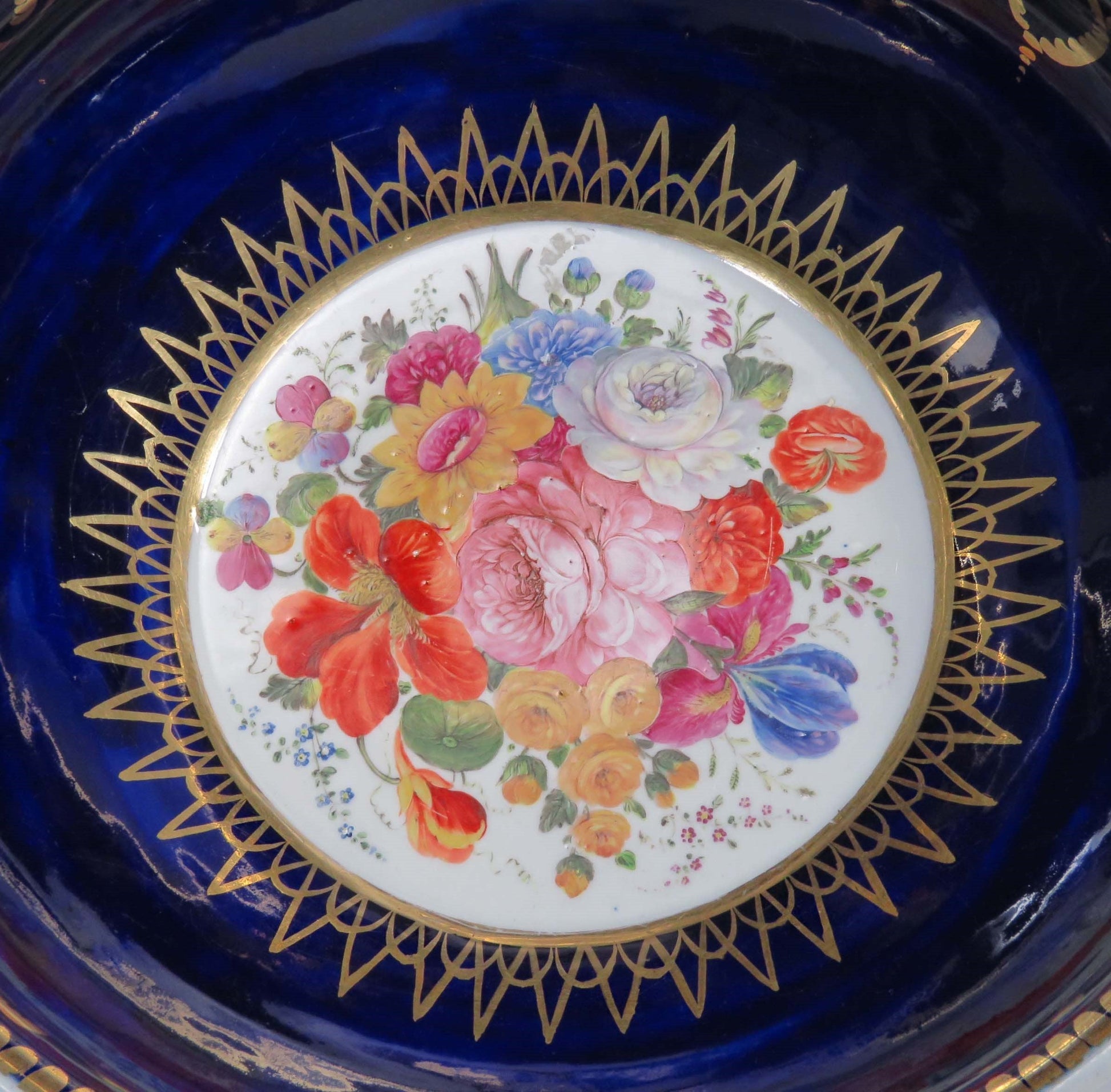 Presented is a nice antique French or English porcelain blue bowl. This bowl has a beautiful floral design throughout. There is gold accents throughout this piece. We believe this bowl is French or English. This is a nice size piece that is well made. Let the photos be your guide. The bowl was made between the 1750's-1770's.