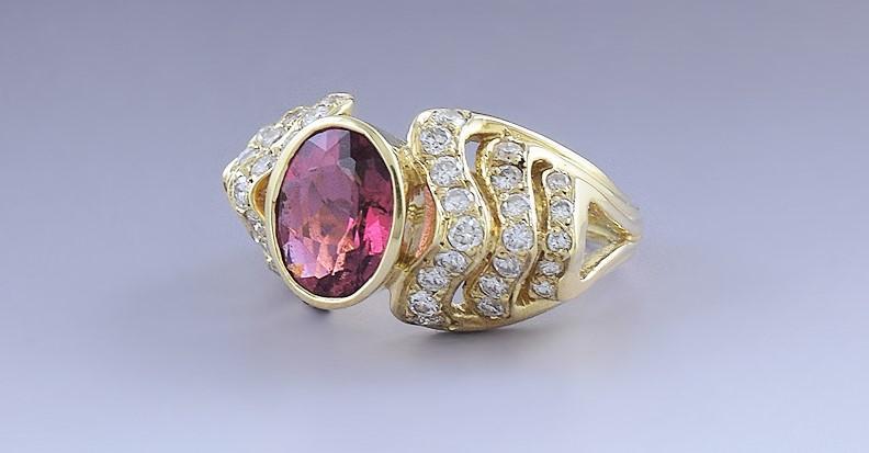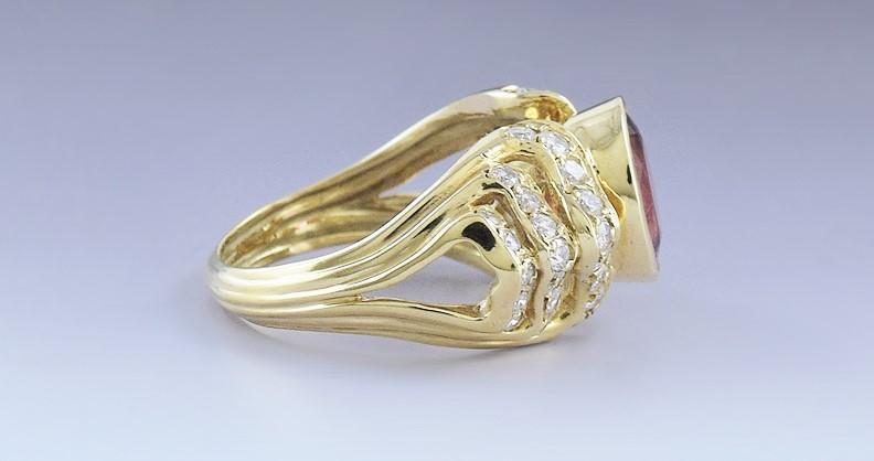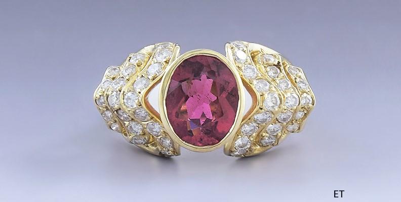Beautiful 18k Gold Pink Tourmaline & ~.75-1ct Diamond Ring sz 7