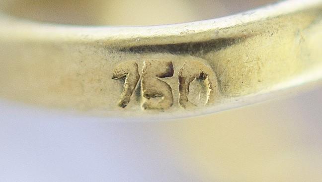 The pendant is stamped 750 for 18 karat gold on the loop/bail at the top.