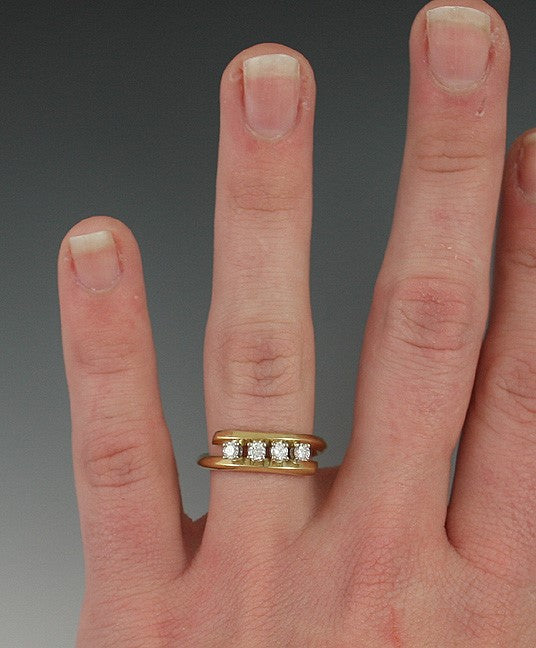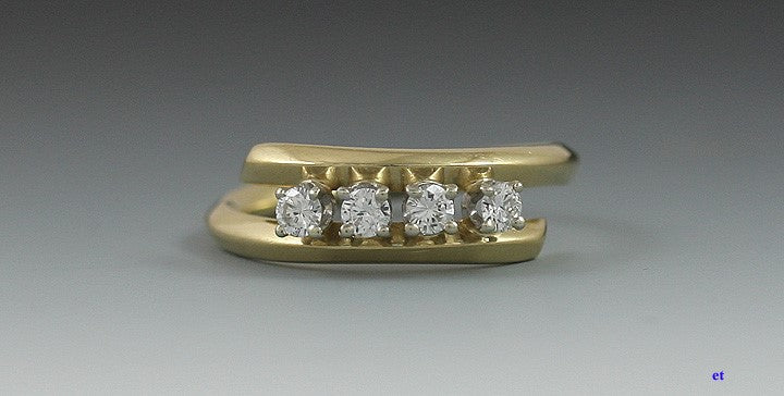 diamonds are evenly spaced in the elegant gold setting. The diamonds are approximately G