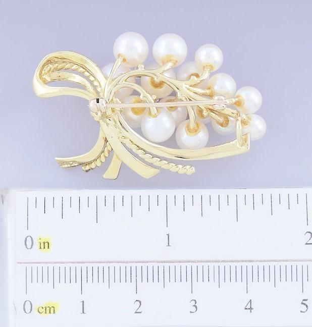 Beautiful 18k Yellow Gold Pearl Diamond Grape Cluster Brooch Pin Pendant