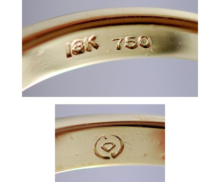 The inside of the ring is marked 18K. Tested and guaranteed.