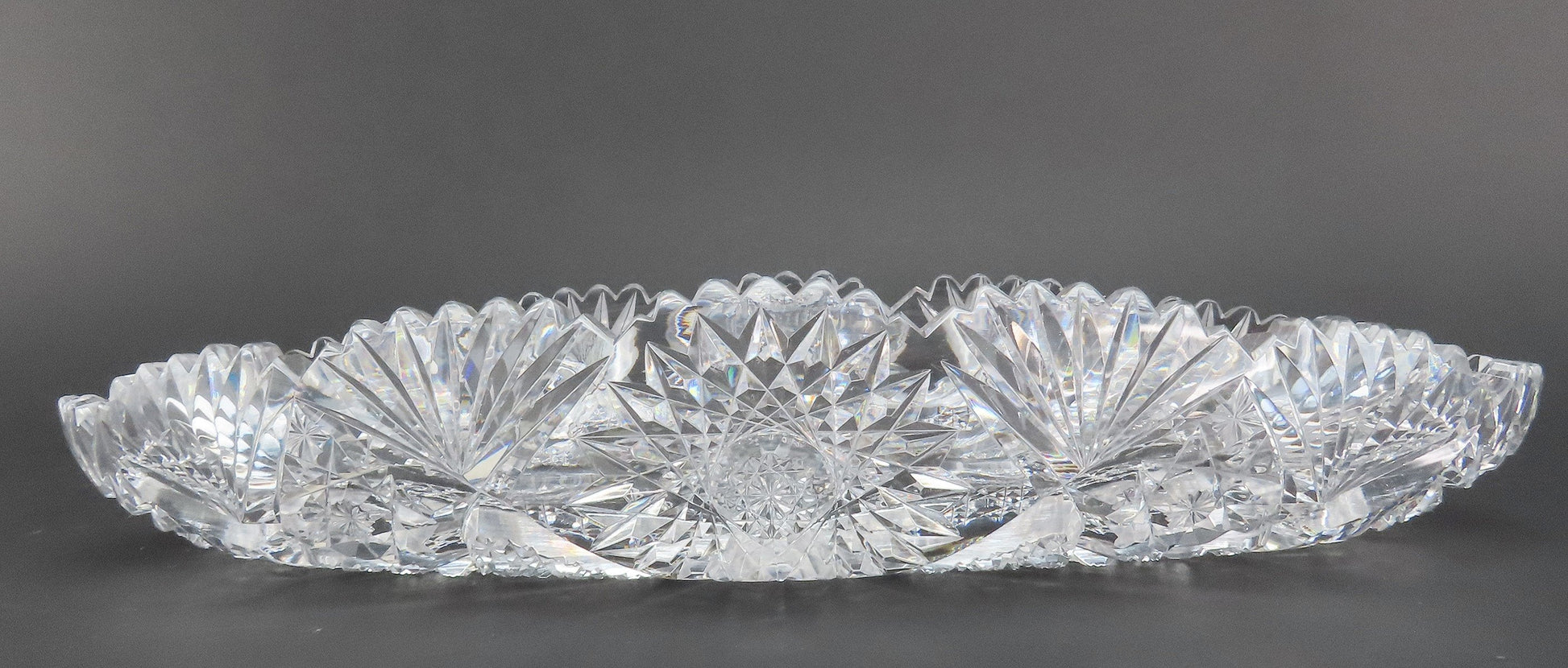 Beautiful American Brilliant ABP Cut Glass Oval Dish 12 1/2 Inches Long