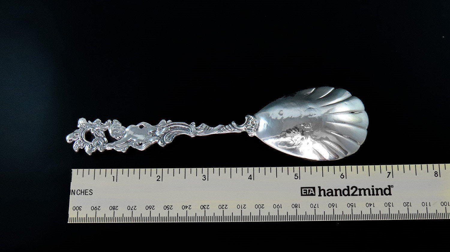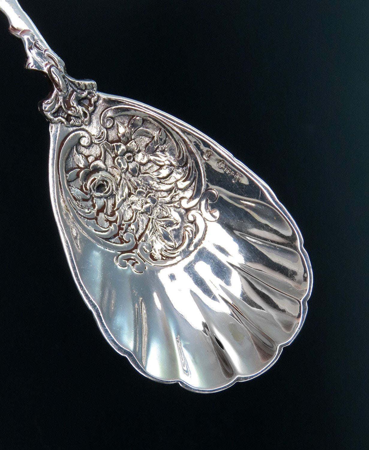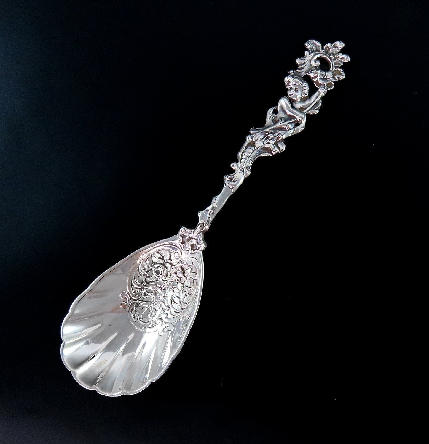 Beautiful Antique German 800 Silver Cherub Flowers Fluted Serving Spoon