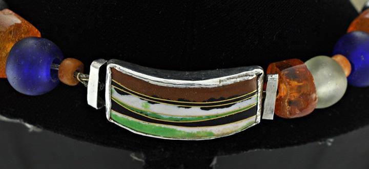 Beautiful Glass Sterling Beaded Choker Necklace Enameled Clasp Orange Green Blue
