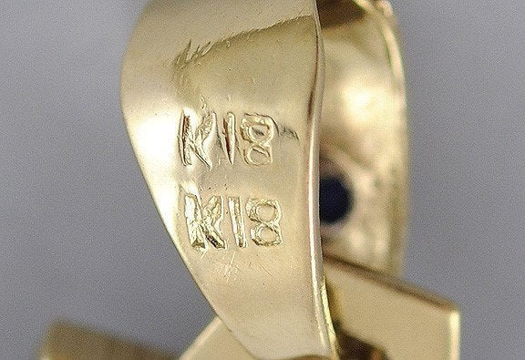 The bale or loop is marked 18K. All of the metal is 18k gold, tested and guaranteed.