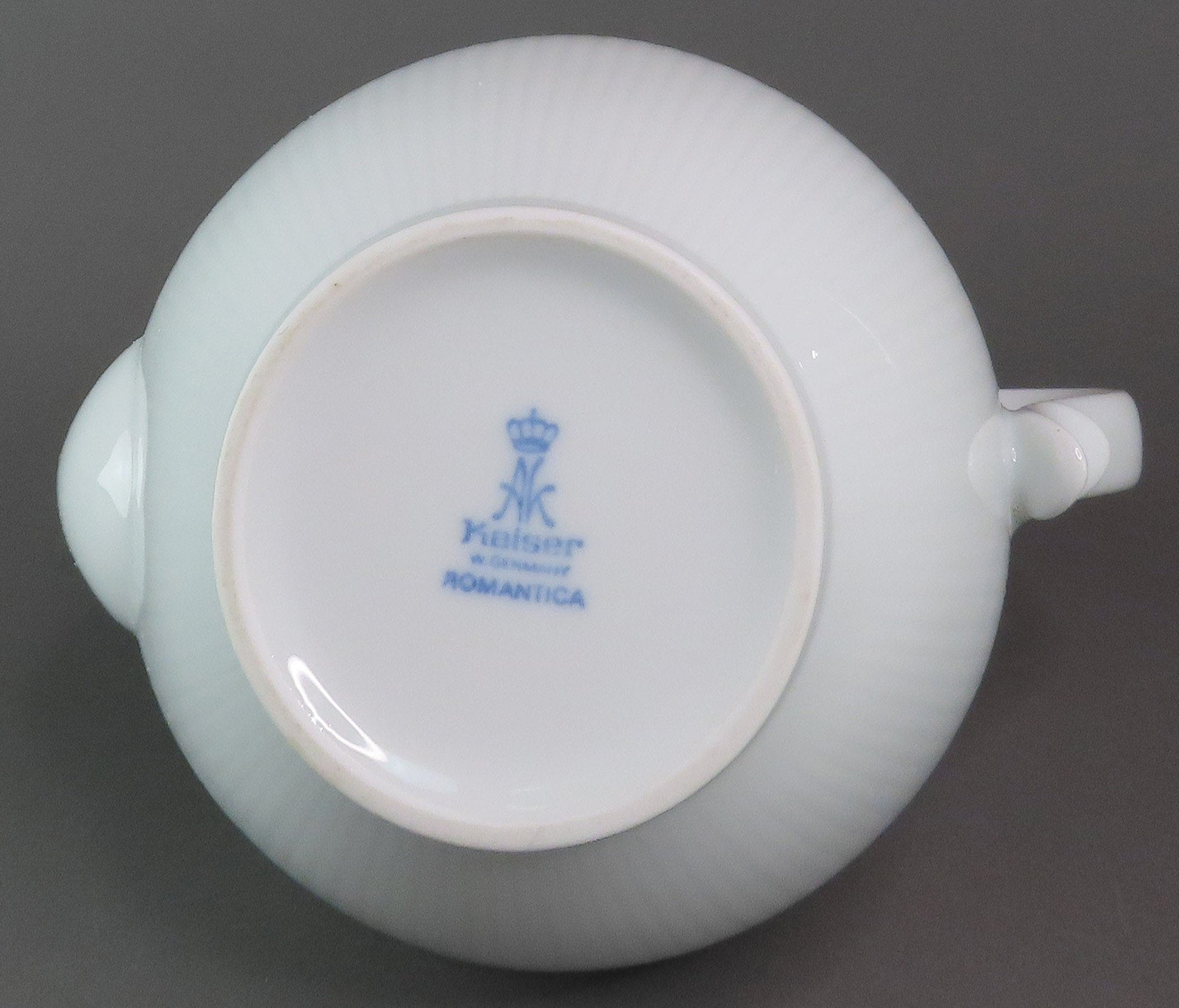 The piece is marked on the underside with the maker's mark for Kaiser and the pattern name “Romantica”. We have other pieces in this pattern. We encourage you to view our page or reach out if you are interested in more of this collection.