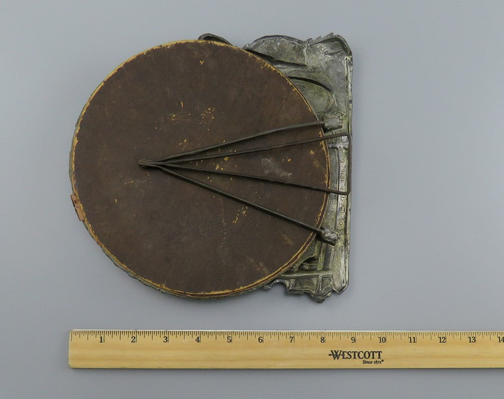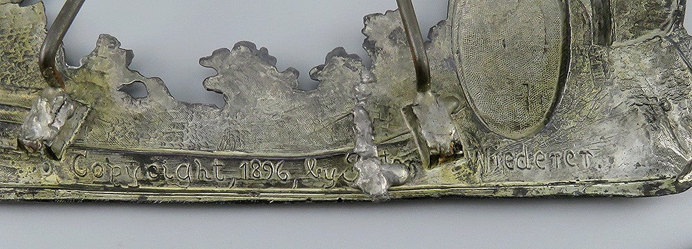 This piece is marked on the backside of the frame “copyright, 1896, by Peter Wiederer” There is a solder mark through the first name of the maker, but from what we can see, we believe this to be Peter Wiederer who was a New York metalworker at the time.