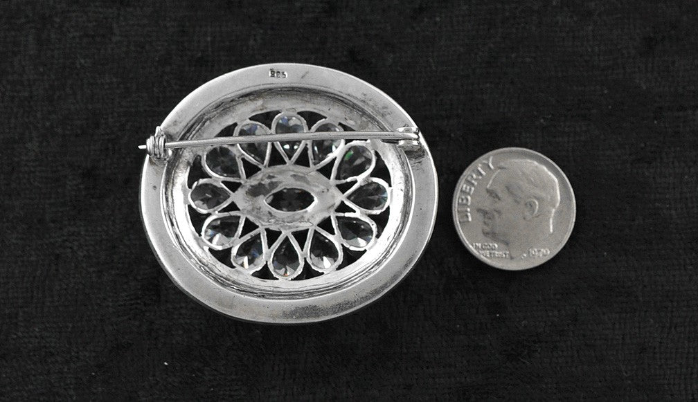 Beautiful Oval Synthetic Stone and Marcasite Sterling Silver Pin Brooch