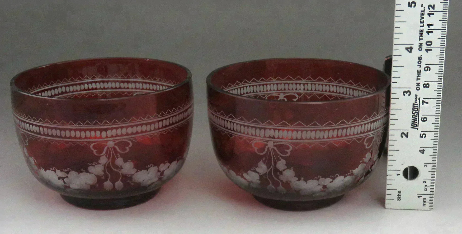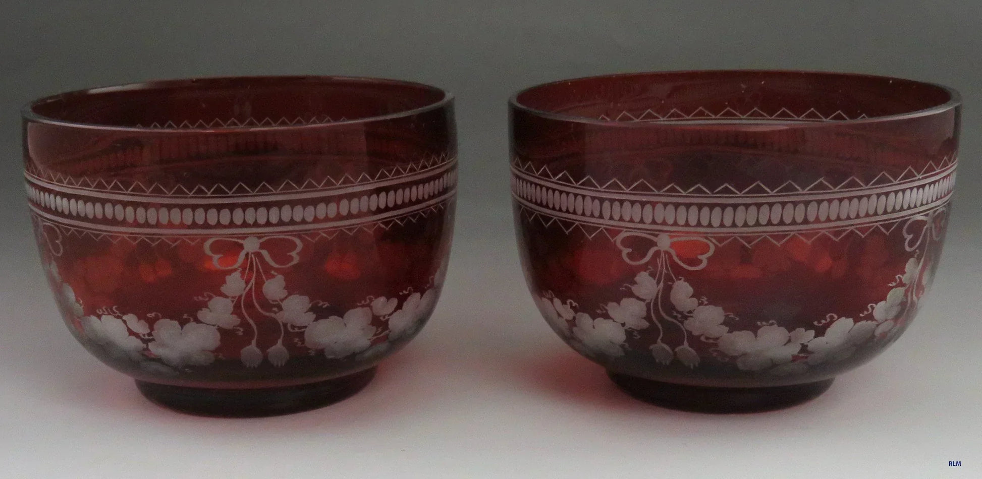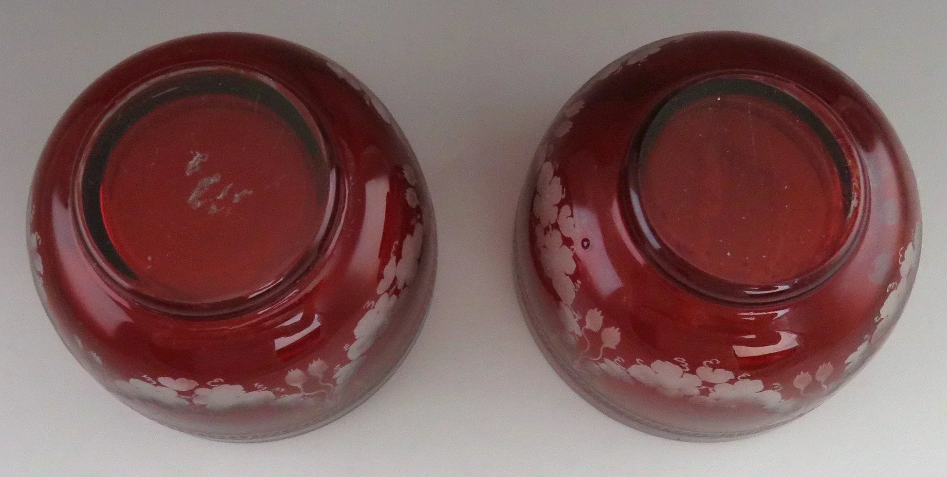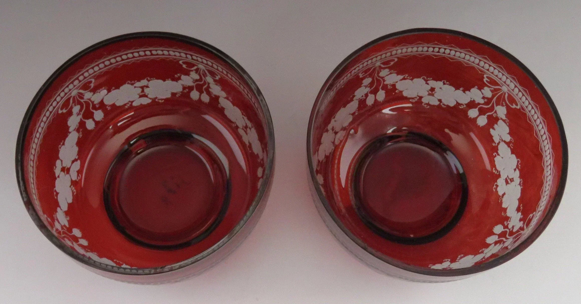 Beautiful Pair Antique Mid 1800s Bohemian Red Ruby Cut Glass Dessert Bowls (1/6)