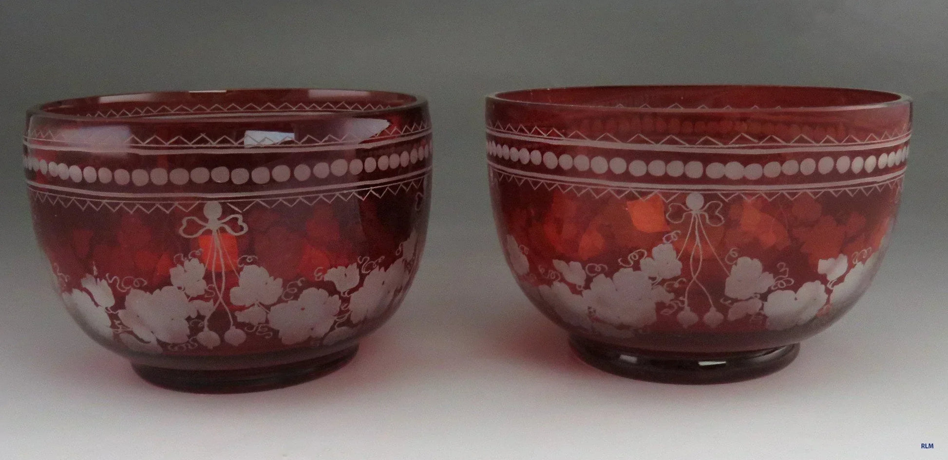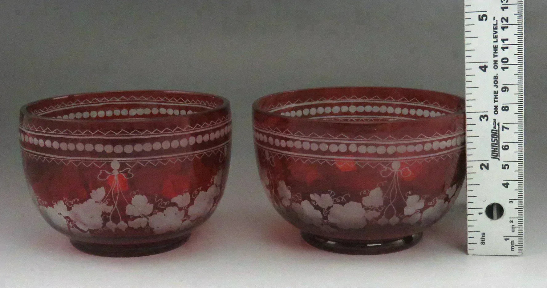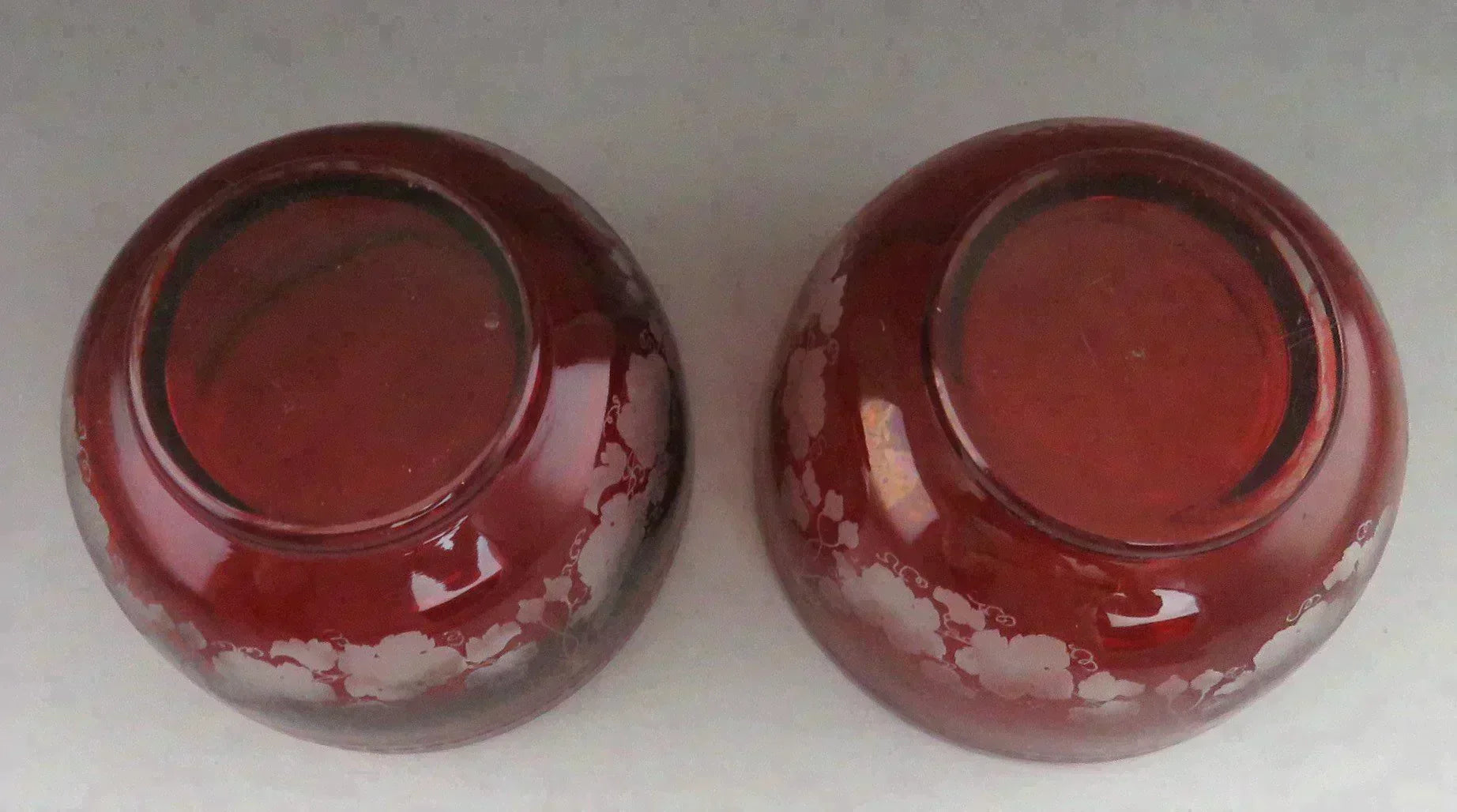 Beautiful Pair Antique Mid 1800s Bohemian Red Ruby Cut Glass Dessert Bowls (4/6)