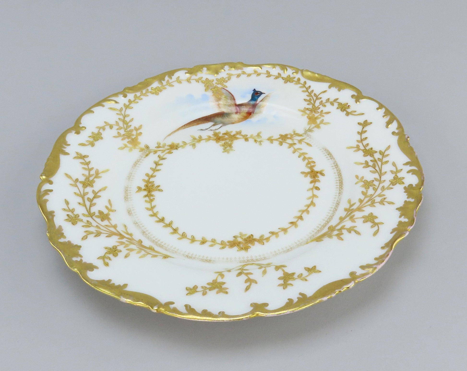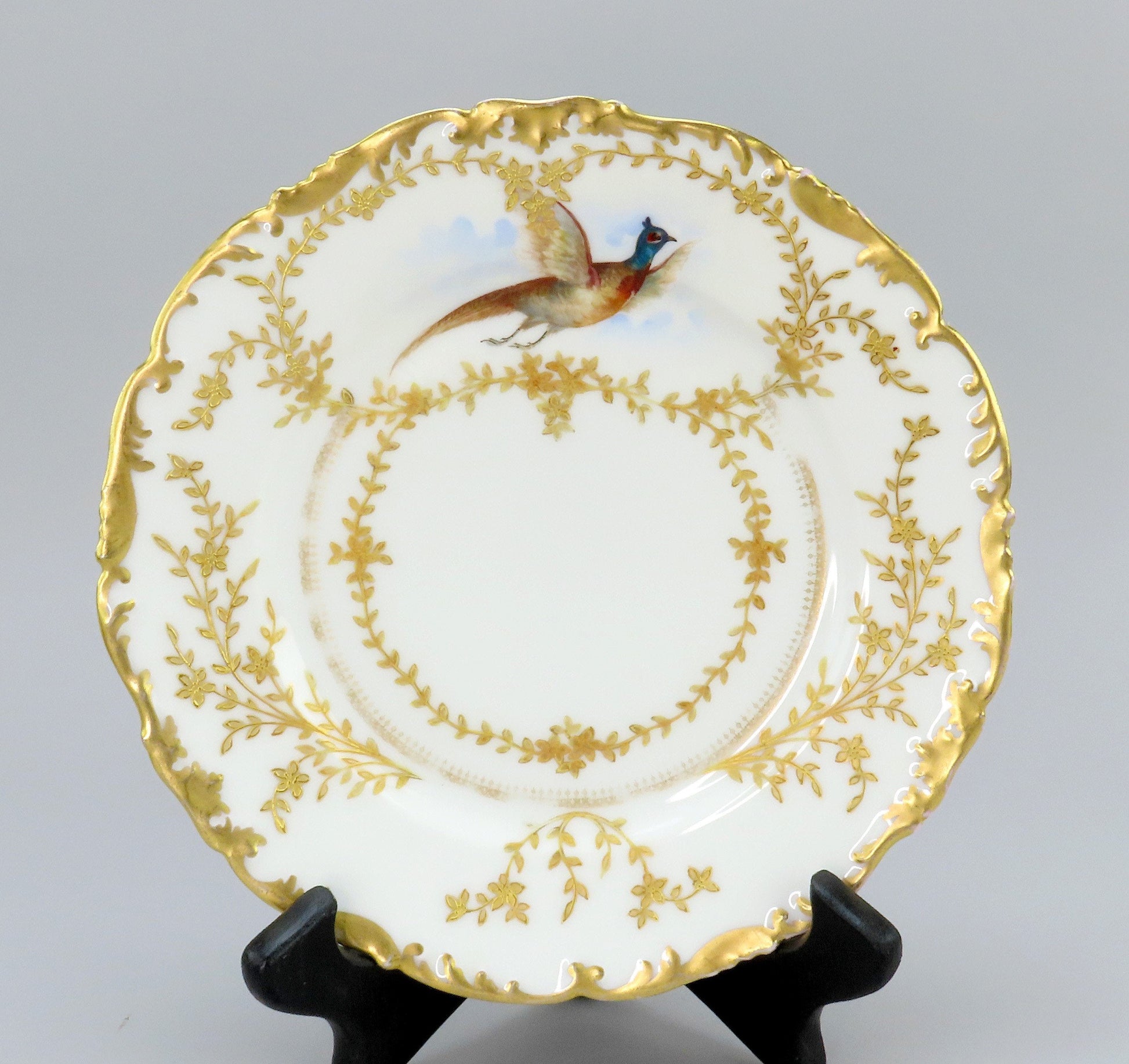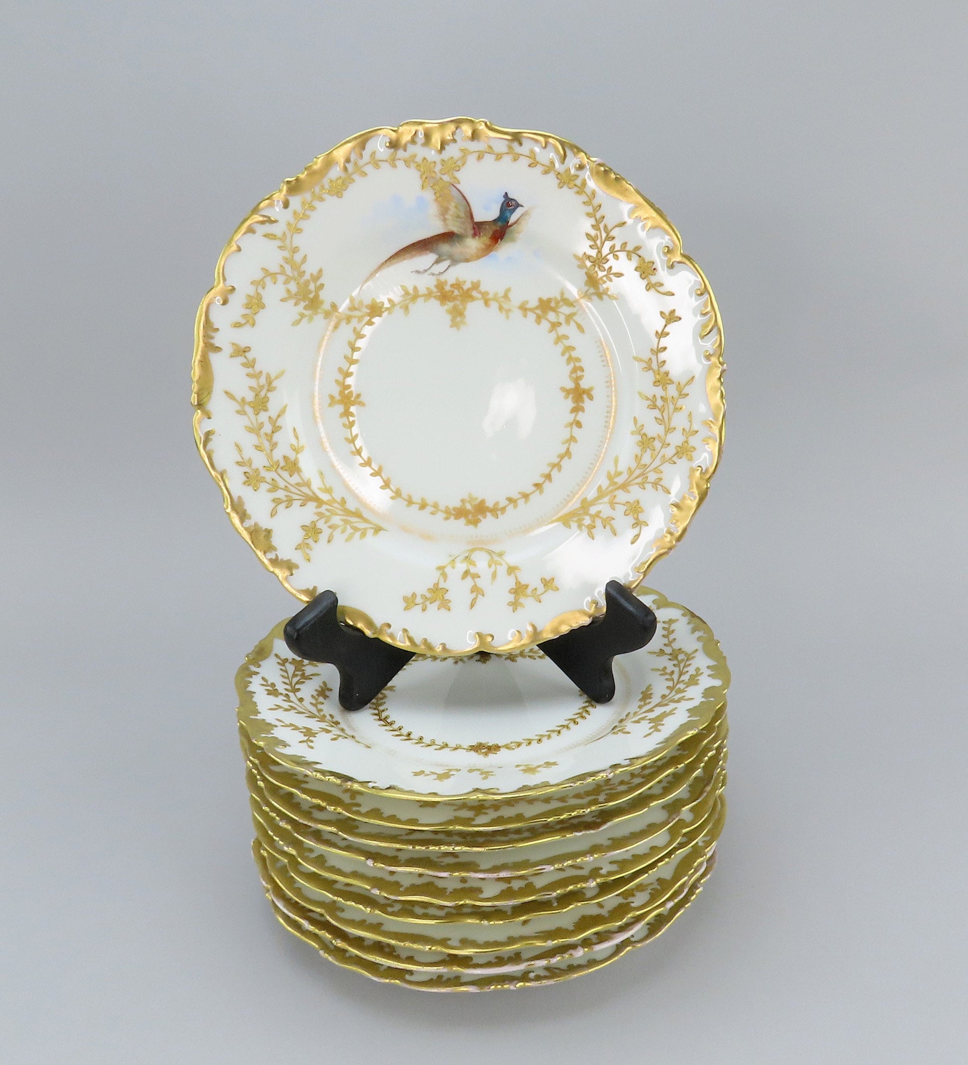 Beautiful Set 10 c1890s French Limoges Tres Vogt Birds Pheasants Gilt 9" Plates