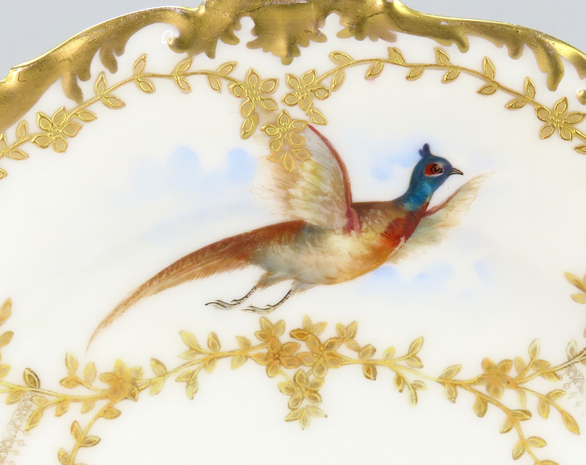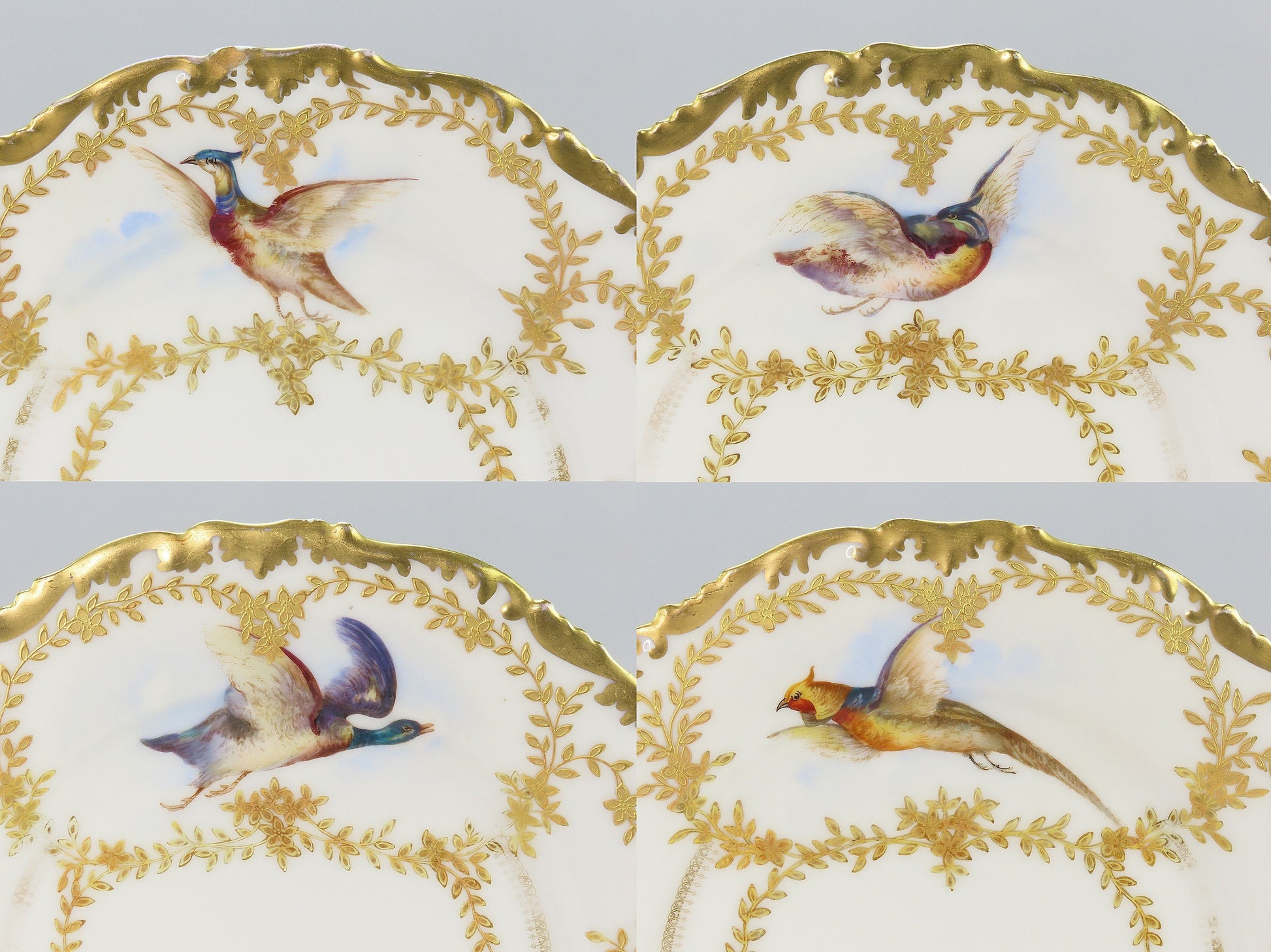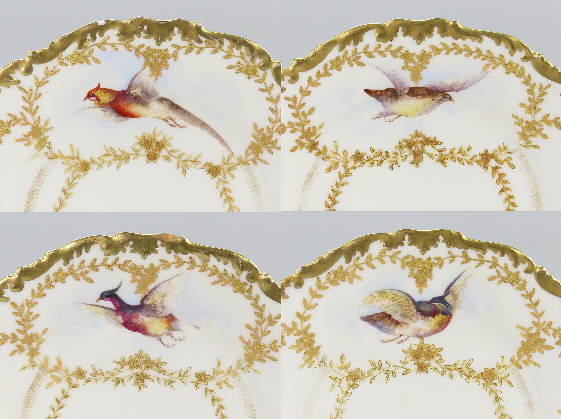Beautiful Set 10 c1890s French Limoges Tres Vogt Birds Pheasants Gilt 9" Plates