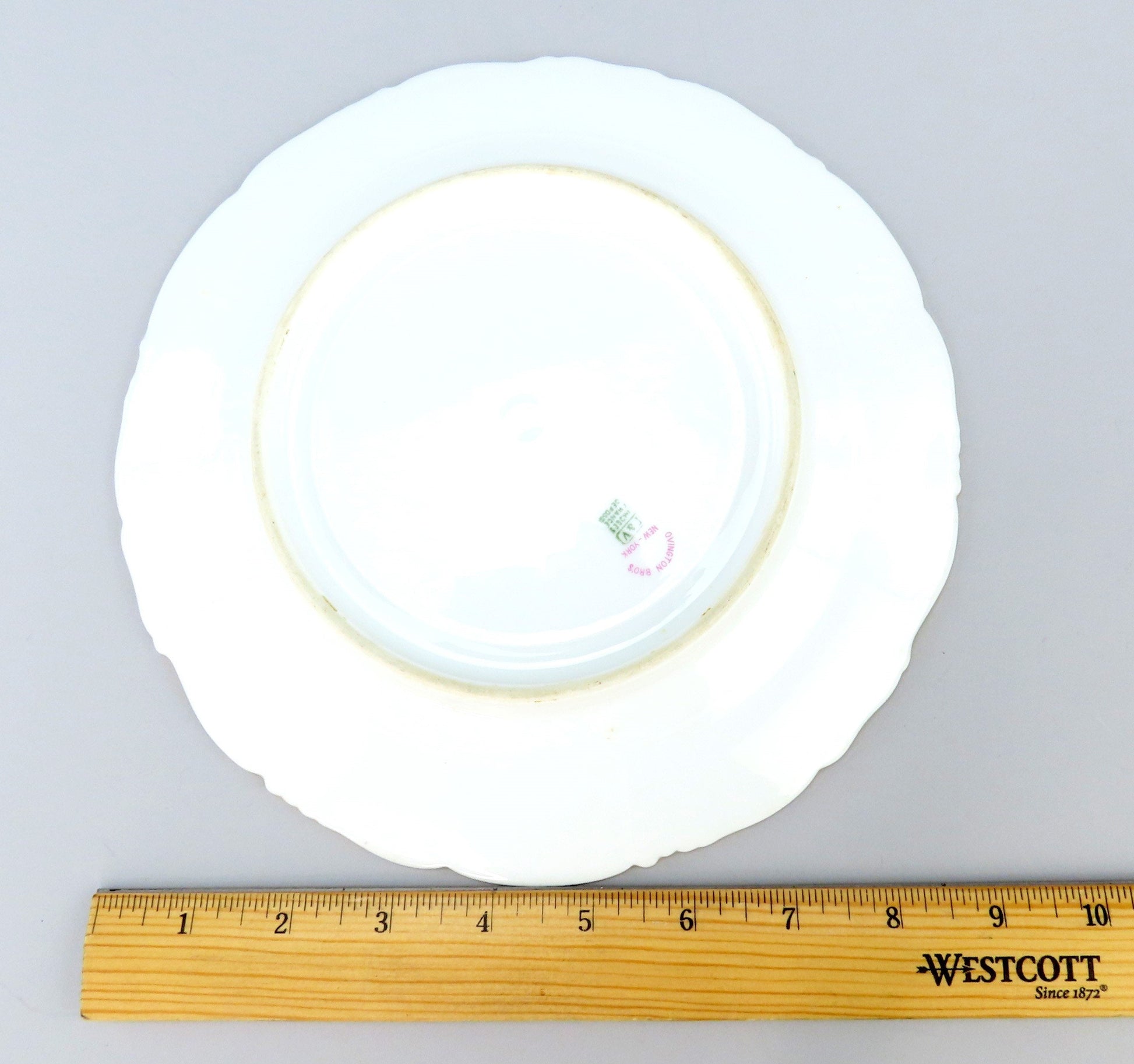 This set is in great overall condition. Five of the plates have tiny chips or flakes to the gilt rim, which have been touched up/re-gilt with gold so they are very hard to notice. There is some wear to the gilding of the inner rim decoration, where the foot of the plate above would touch when the plates are stored in a stack. Some minor wear/loss to the gilding of the outer rim edge here and there. The painted decoration of the birds is in fantastic shape. There are no cracks, no breaks, and no repairs.