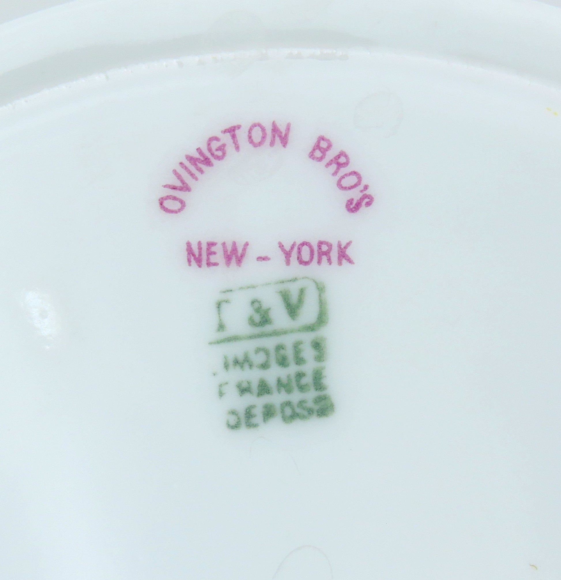 Each plate is signed on the underside with the maker's mark for Tressemanes & Vogt, Limoges France, as well as a retail mark for Ovington Bros, of New York.