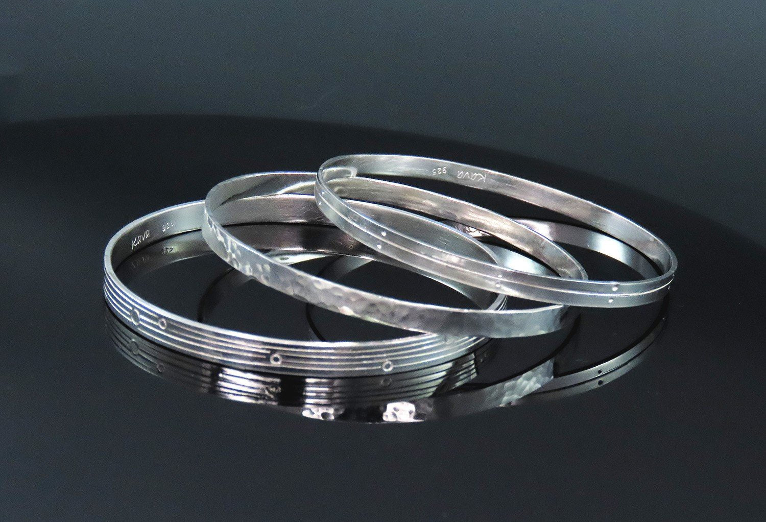 Beautiful Set 3 Sterling Silver Bangle Bracelets 7 3/4 inches