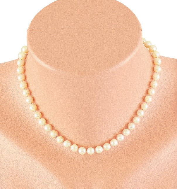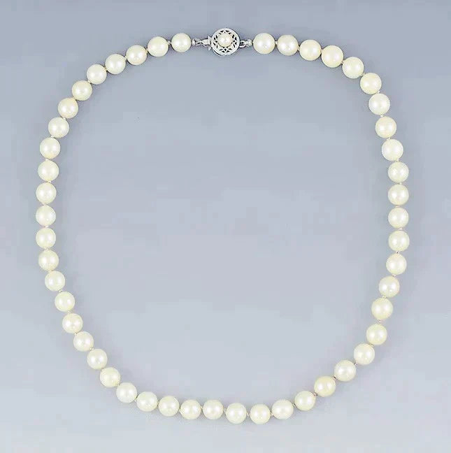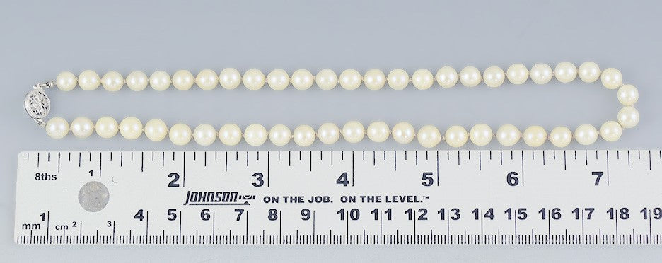Beautiful Single Strand 6.5mm Pearl Necklace w 14k White Gold Filigree Clasp