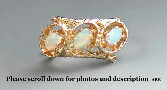 Presented is an incredibly beautiful Opal ring (3 opal stones) set in a 10k gold band. Size 6.