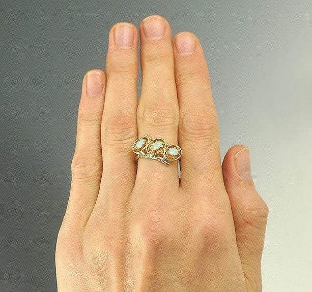 Beautiful Sparkling Three Stone Opal 10k Gold Ring Size 6