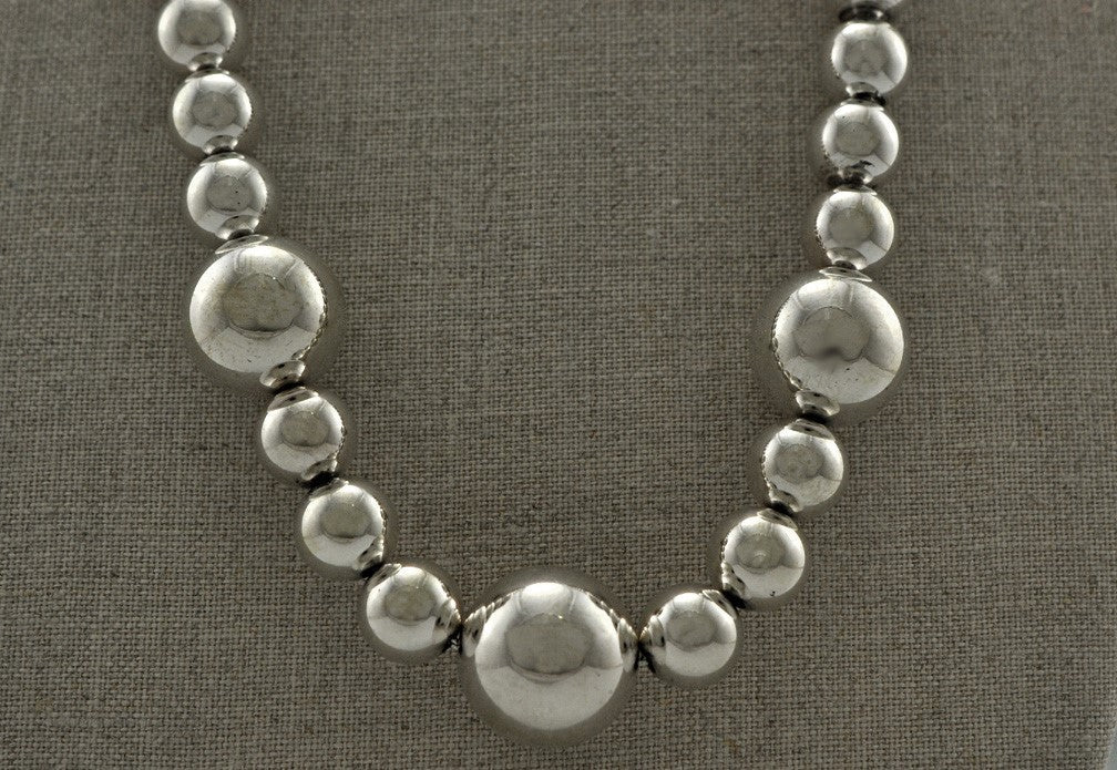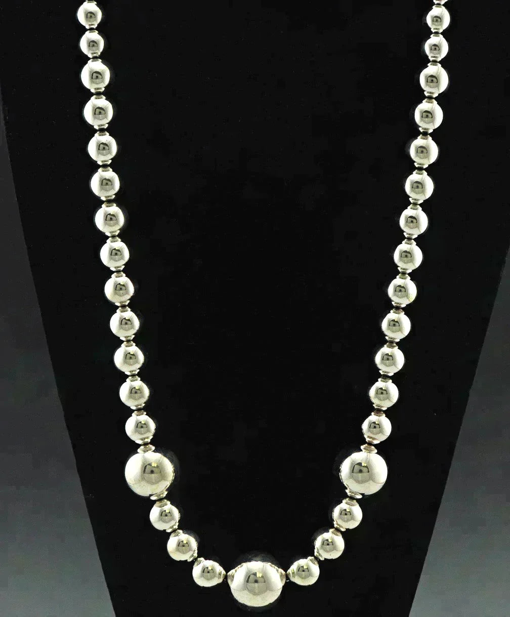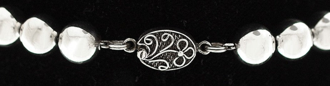 Beautiful Sterling Silver Beaded Necklace Filigree Clasp