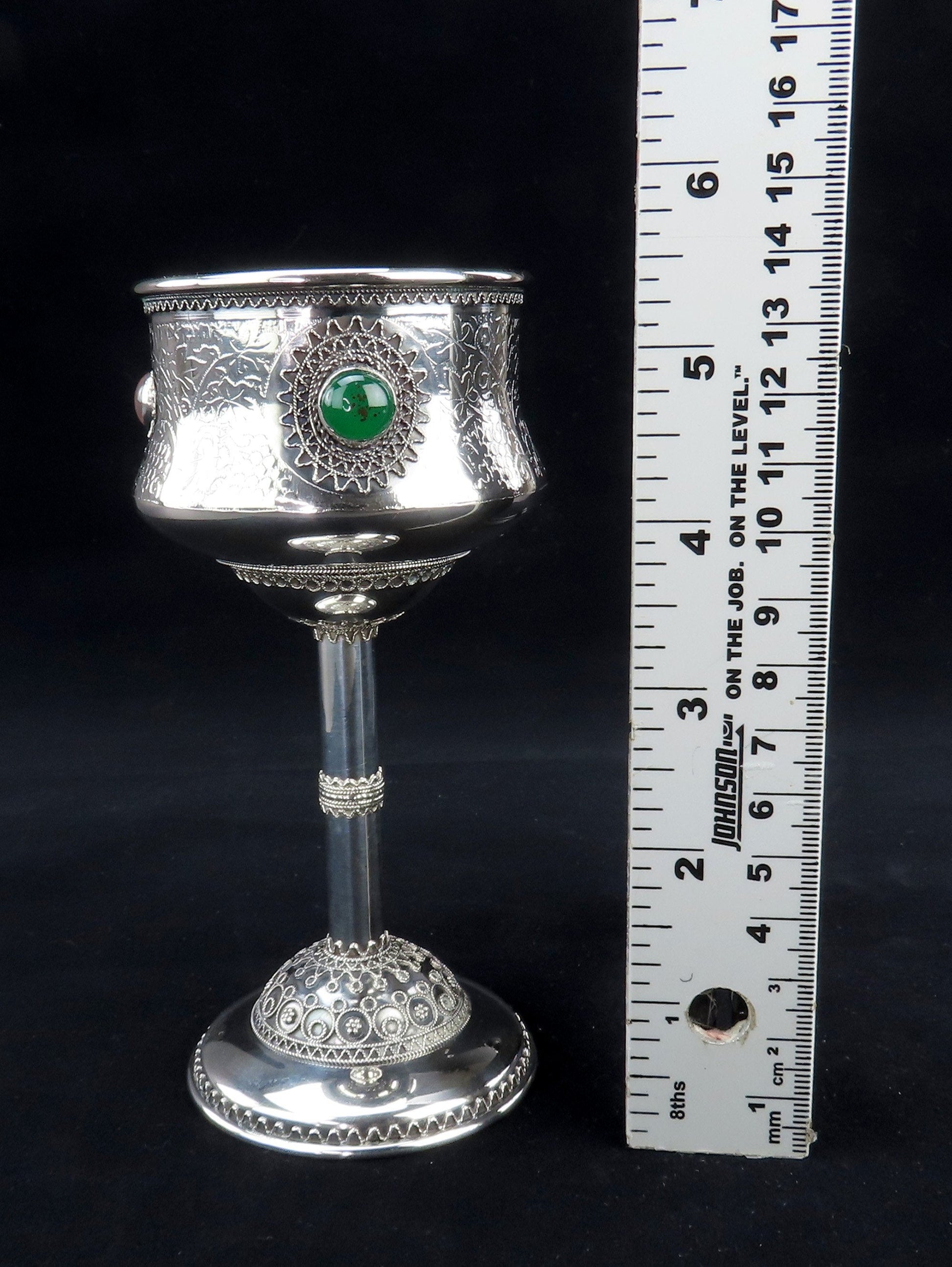 Beautiful Sterling Silver Kiddush Cup Hebrew Prayer w/ 3 Stones Likely Zadok