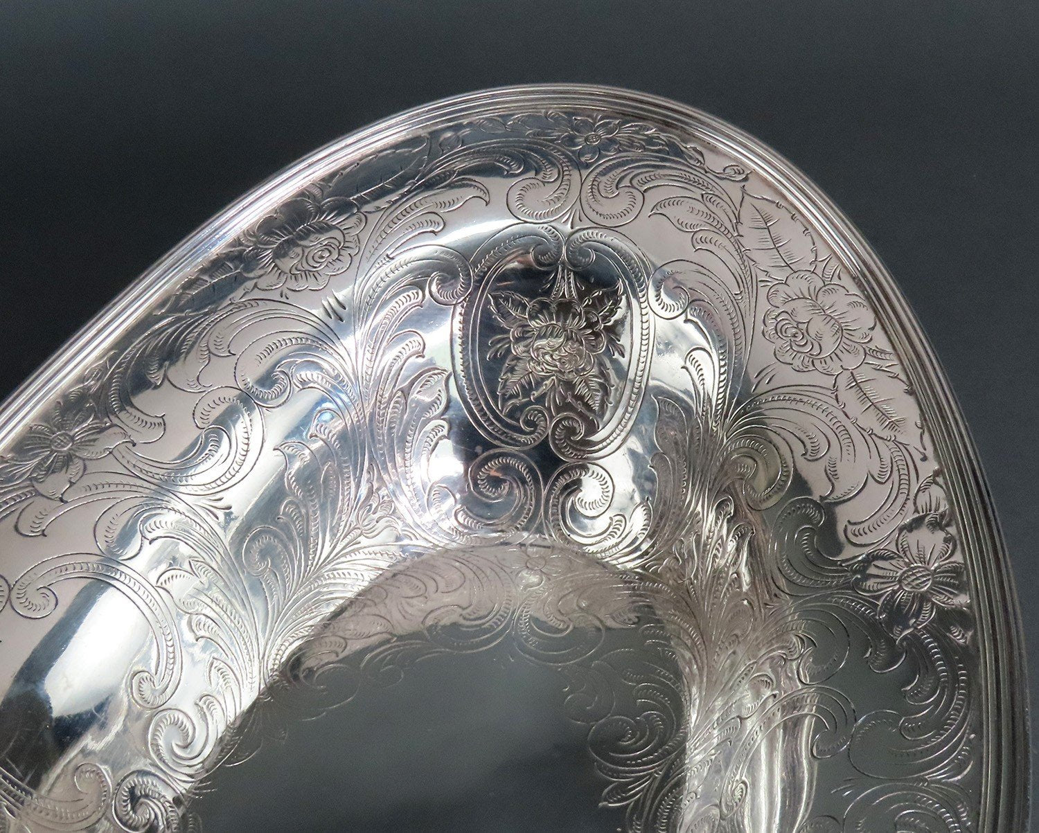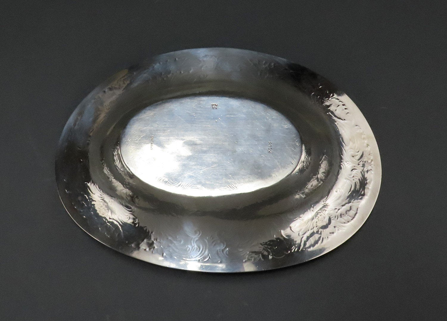 Beautiful Sterling Silver Oval Bowl Hand-Chased Scrolls Flowers c1900 No Mono