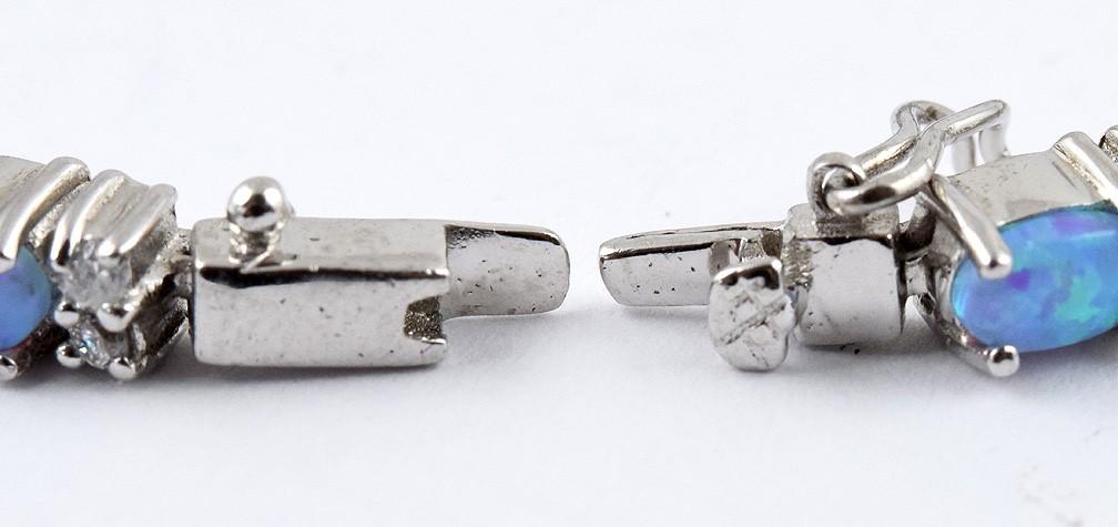 Beautiful Sterling Silver Synthetic Opal and Diamond Bracelet, 6 3/4"
