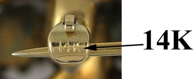 The pin is stamped 14k on the clasp. We have tested the gold of the pin