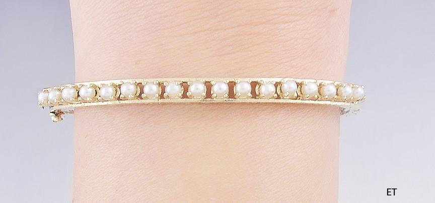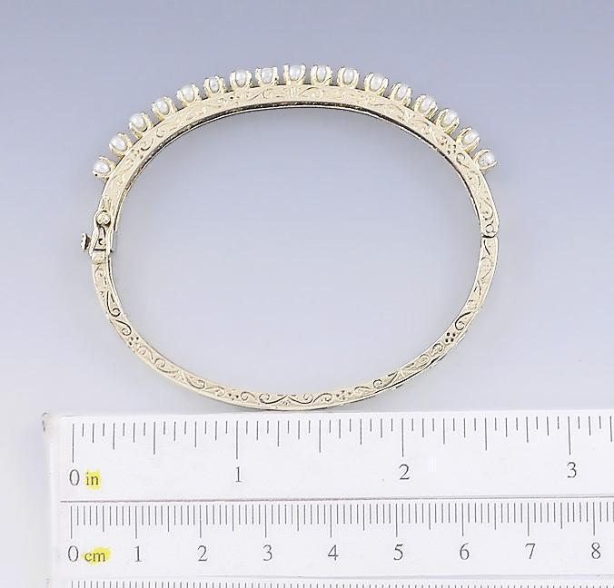 Beautiful Vintage 14k Gold & Pearl Engraved Bangle Bracelet