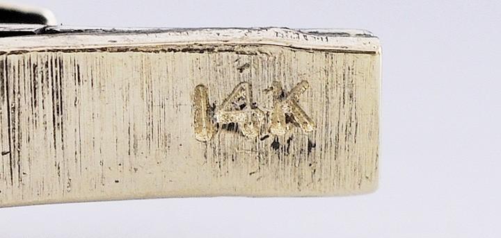 engraved with a scrolled design. The bracelet is hinged, with a tab insert style