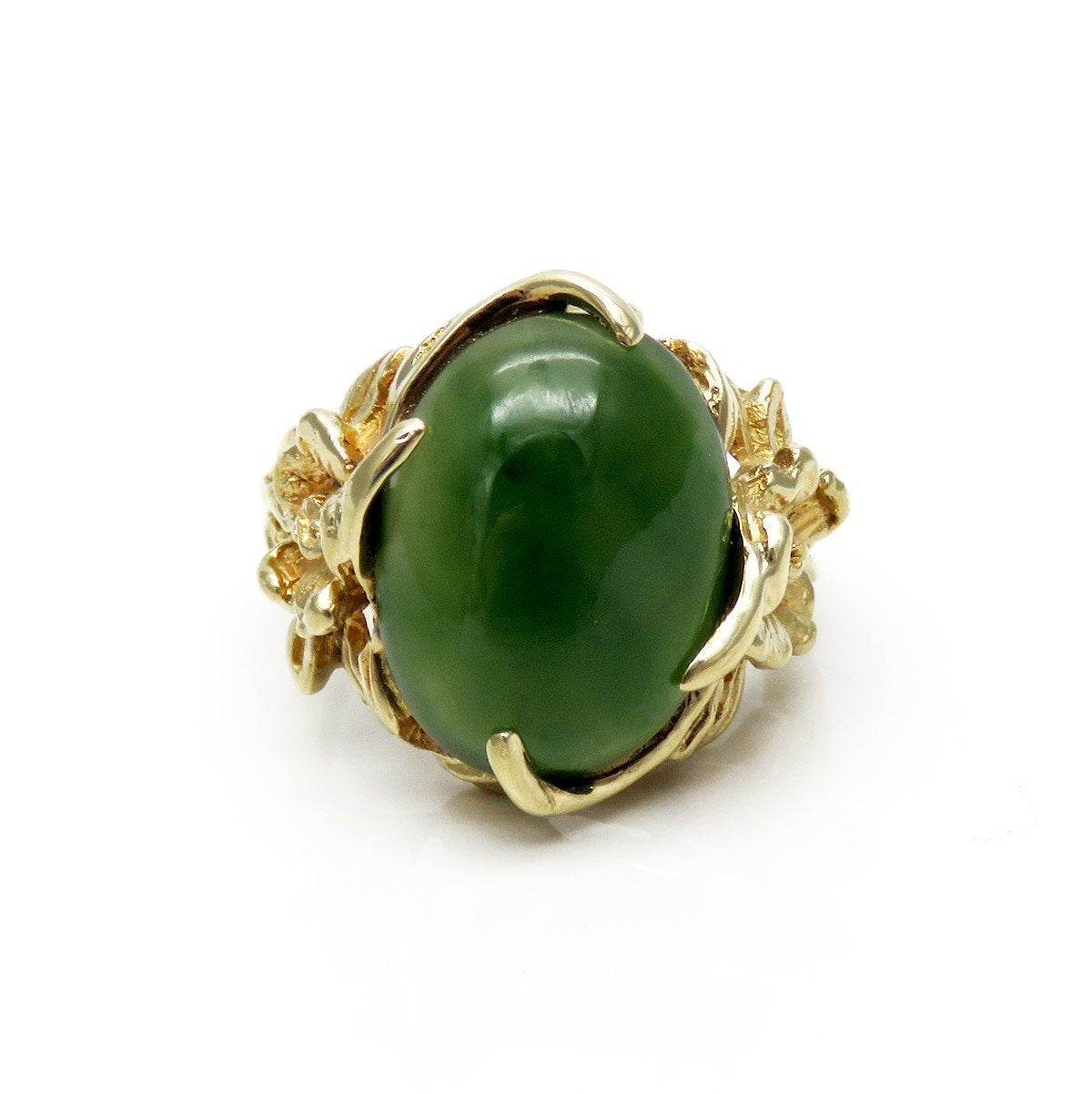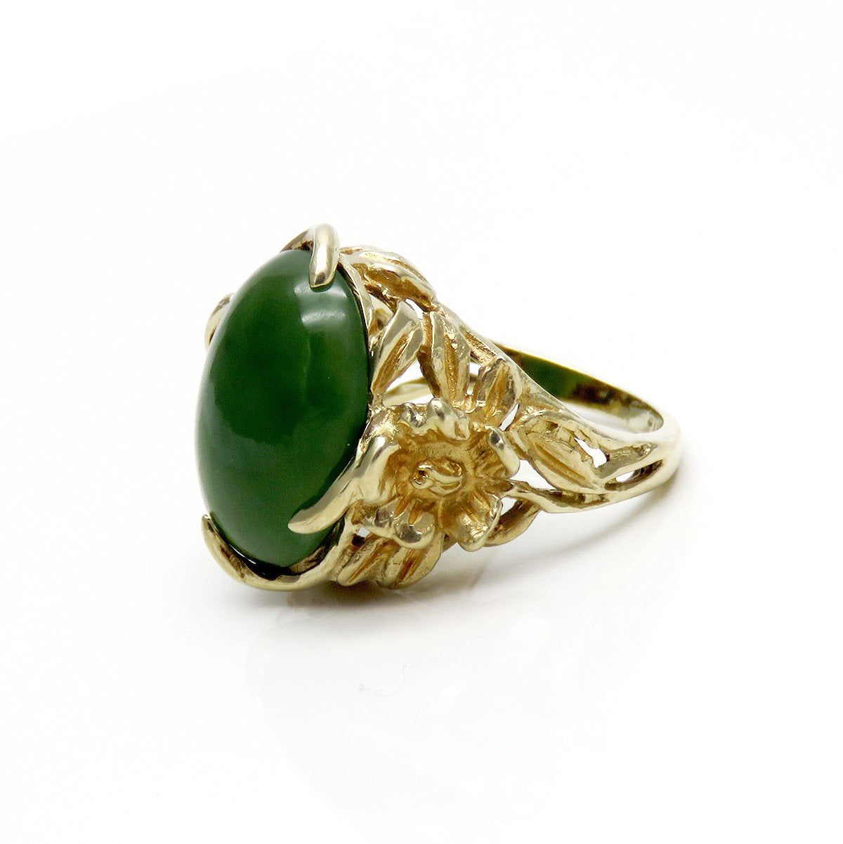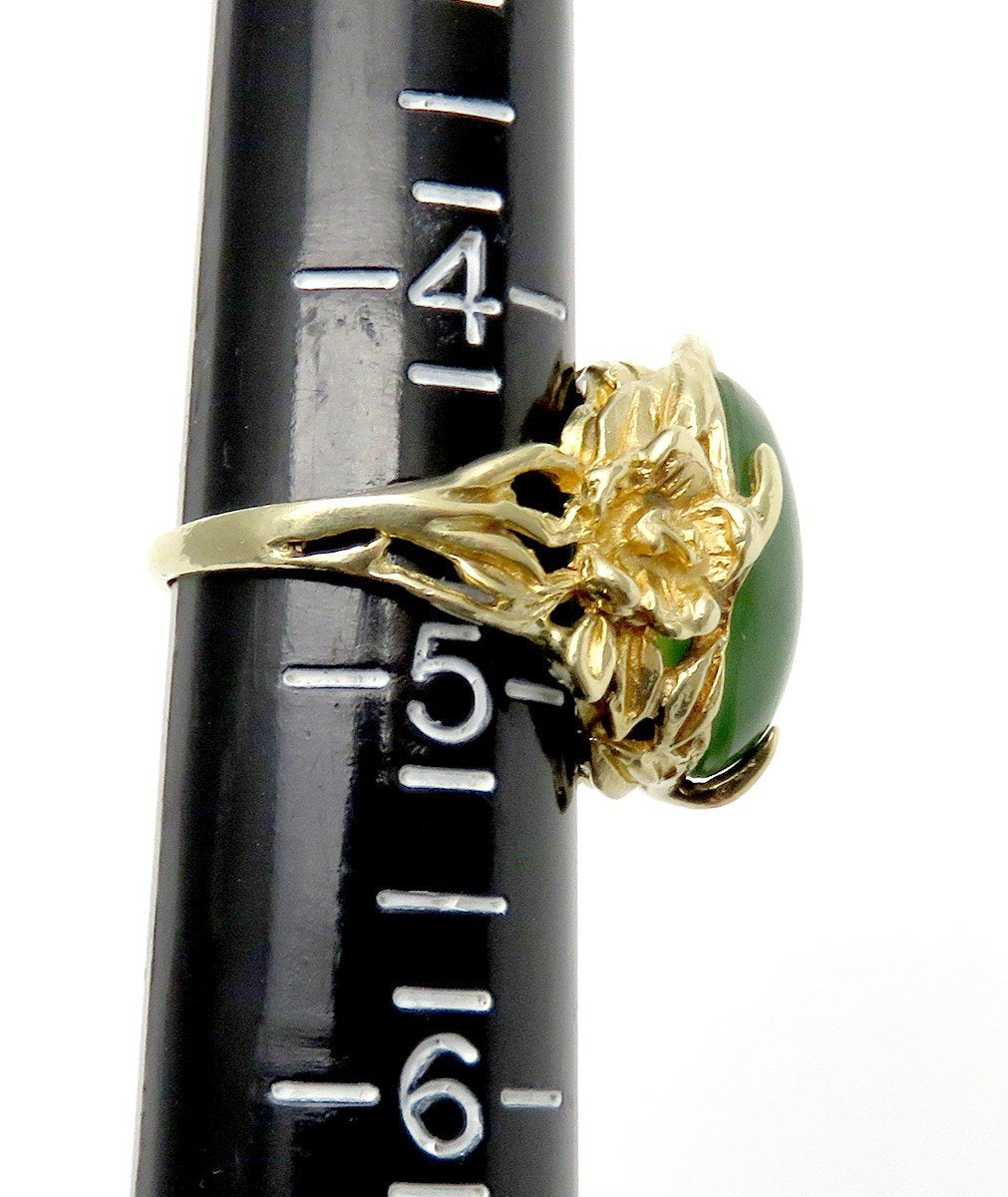 Beautiful VTG 10k Yellow Gold Green Nephrite Jade Floral Ring