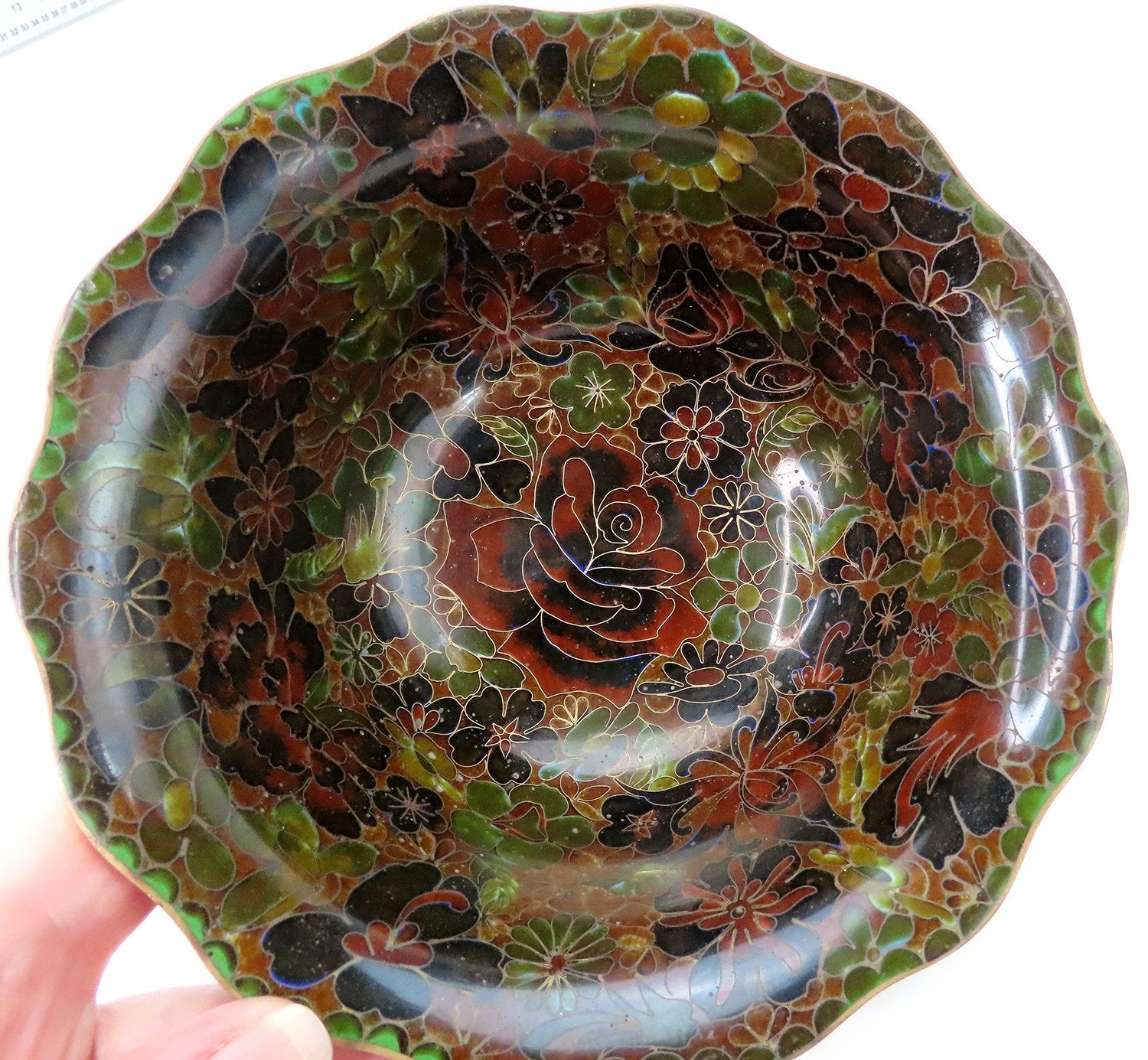 Beautiful VTG Chinese or Japanese Cloisonne Enamel Rose Floral Bowl
