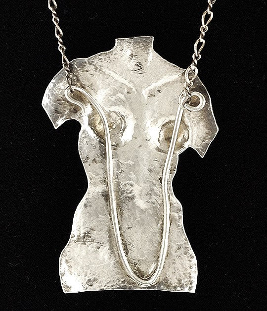 Beverly Willke Sterling Silver Hand Chased Pendant and Chain Necklace 22 1/2"