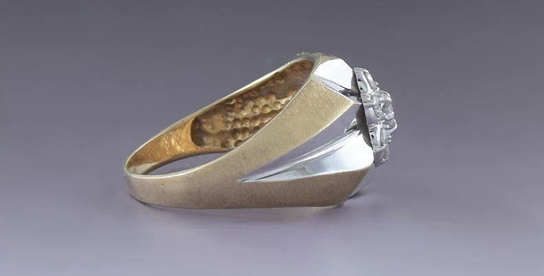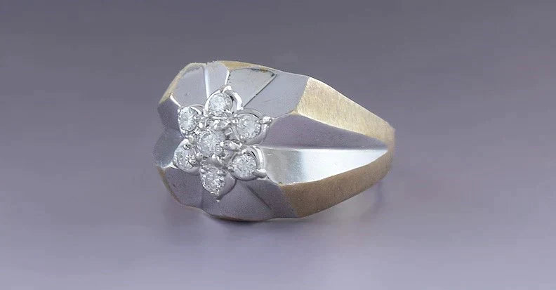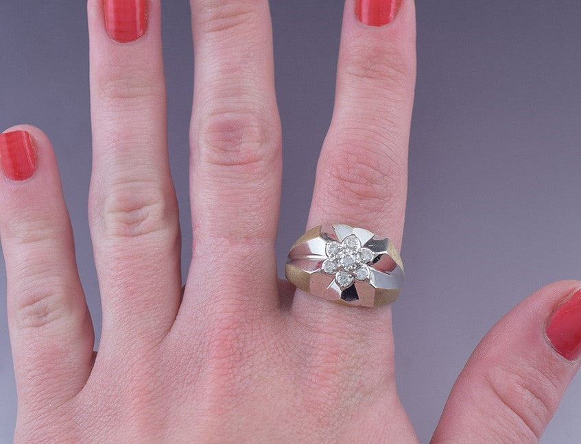 Brilliant 10K White and Yellow Gold Diamond Floral Ring Size 12