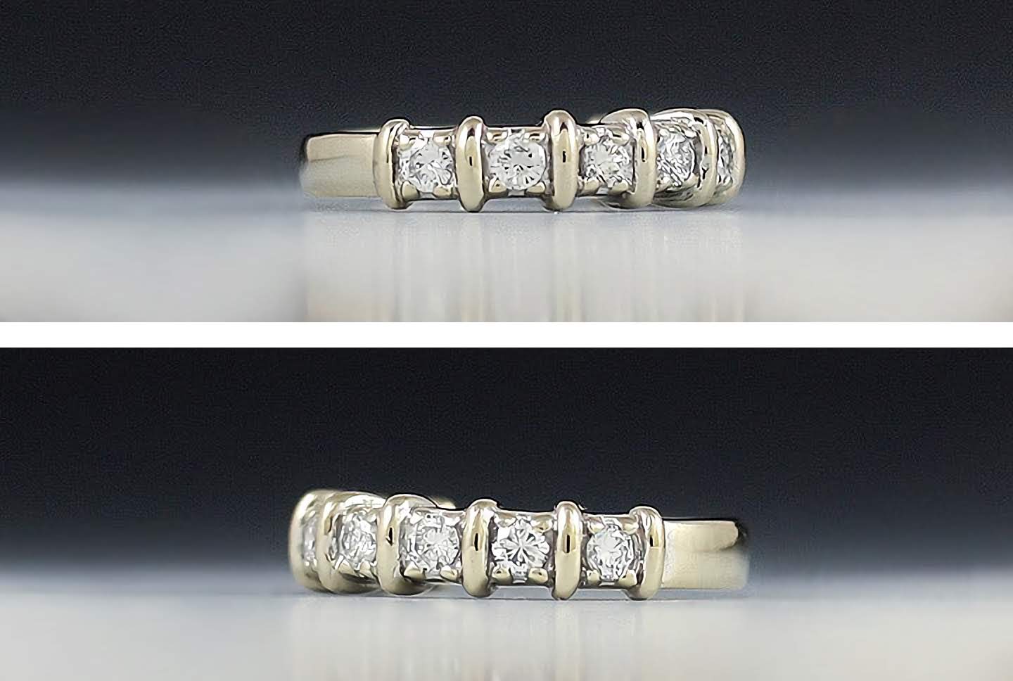 The ring is in great condition overall. Two stones have small fleabites, but this is only noticeable when examined under 10x magnification. All the stones are well set. There are no splits, no breaks, and no repairs.