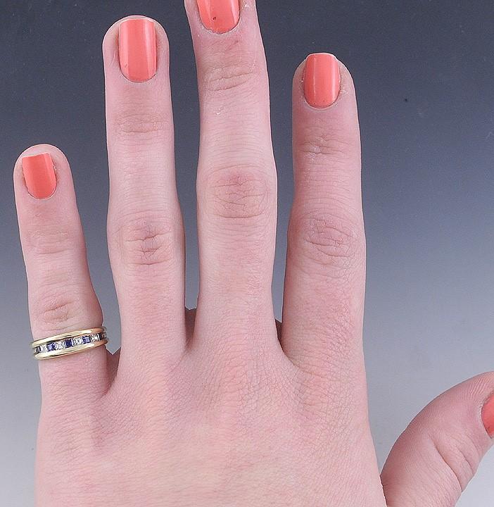 Brilliant 14k Yellow Gold Diamond Blue Sapphire Square Cut Anniversary Band Ring