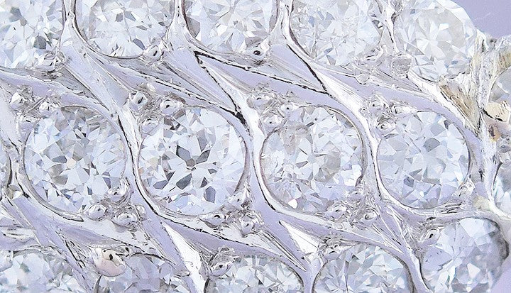 about 8-10 points. These exterior diamonds are mostly SI to I-1 clarity, with a couple of I-2, and H/I color. The total diamond weight is at least 1.5 carats and as much as 1.75 carats.