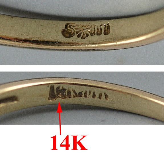 The ring is stamped 14K on the inside of the band. We have tested the band with nitric acid and affirm that it is 14K gold.