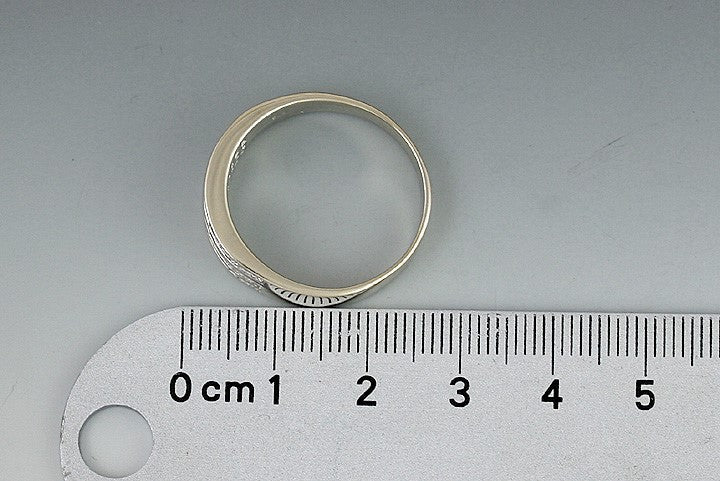 Presented is a very nice 14K white gold diamond band. The ring is modern and likely made in America in the last 30 years. The top of the ring is set with three rows of princess radiant cut diamonds, 14 in each row. Each diamond is approximately 3 points each, so the total diamond weight is approximately 1 1/4 carats. The ring is very well made with the higher end channel set construction. The diamonds are high quality as well, with G-H color and VS clarity, with some in the VVS category and some in SI. The diamonds are much brighter and livelier than the photos show. A very nice ring with very nice stones.