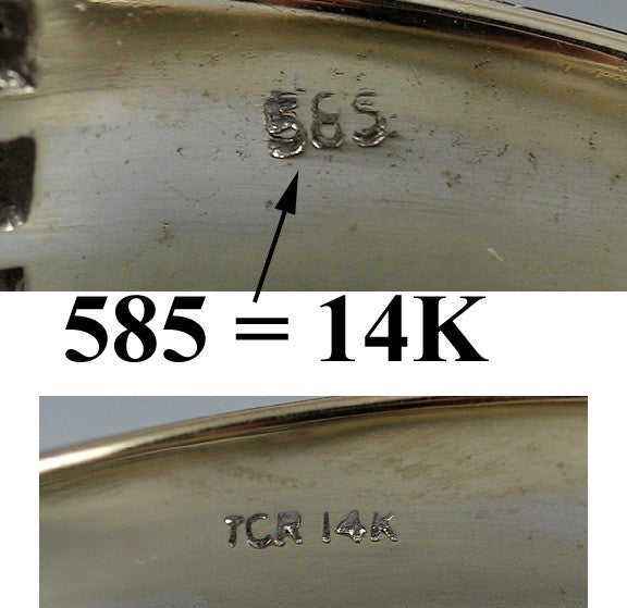 The ring setting is marked on the inside of the band with 14K for 14K gold purity and the initials TCR. We have tested the setting with nitric acid and guarantee the setting to be 14K gold.