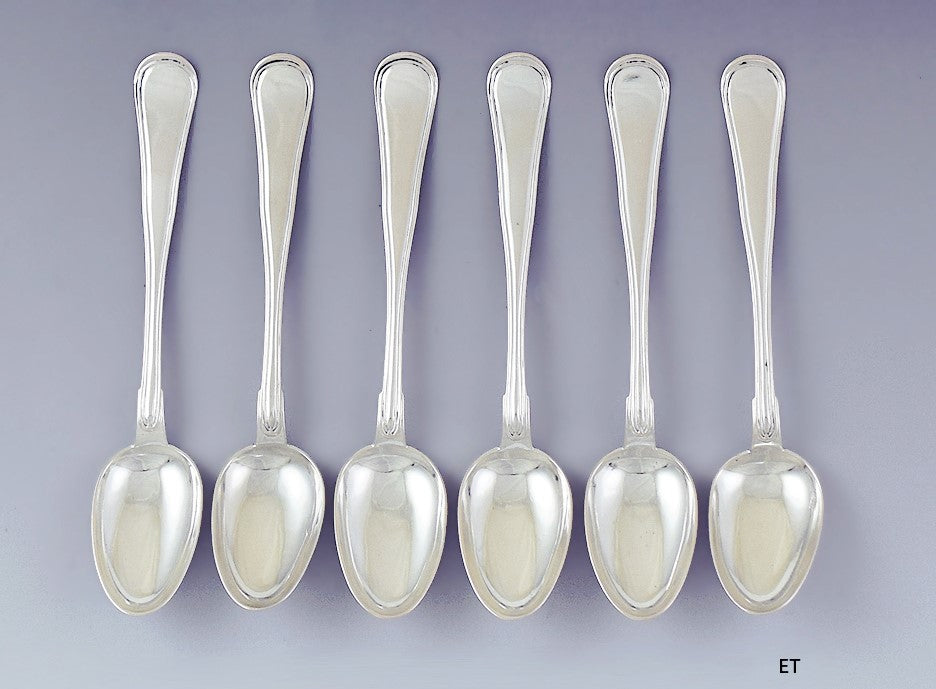 c1800-1850 Nice Set 6 European? Silver Thread Pattern Teaspoons