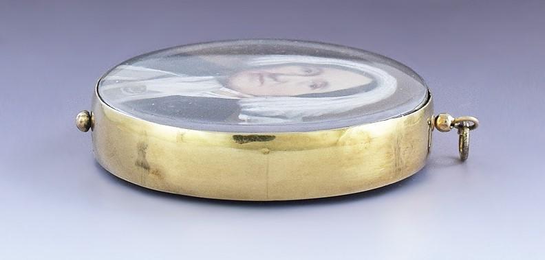 European make. The pendant is oval in form, with a painted miniature portrait on