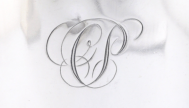 The cup is in good overall condition considering its age. There are some dents here and there, which could be professionally taken out. There are no splits, no breaks, no monogram removals, and no repairs.