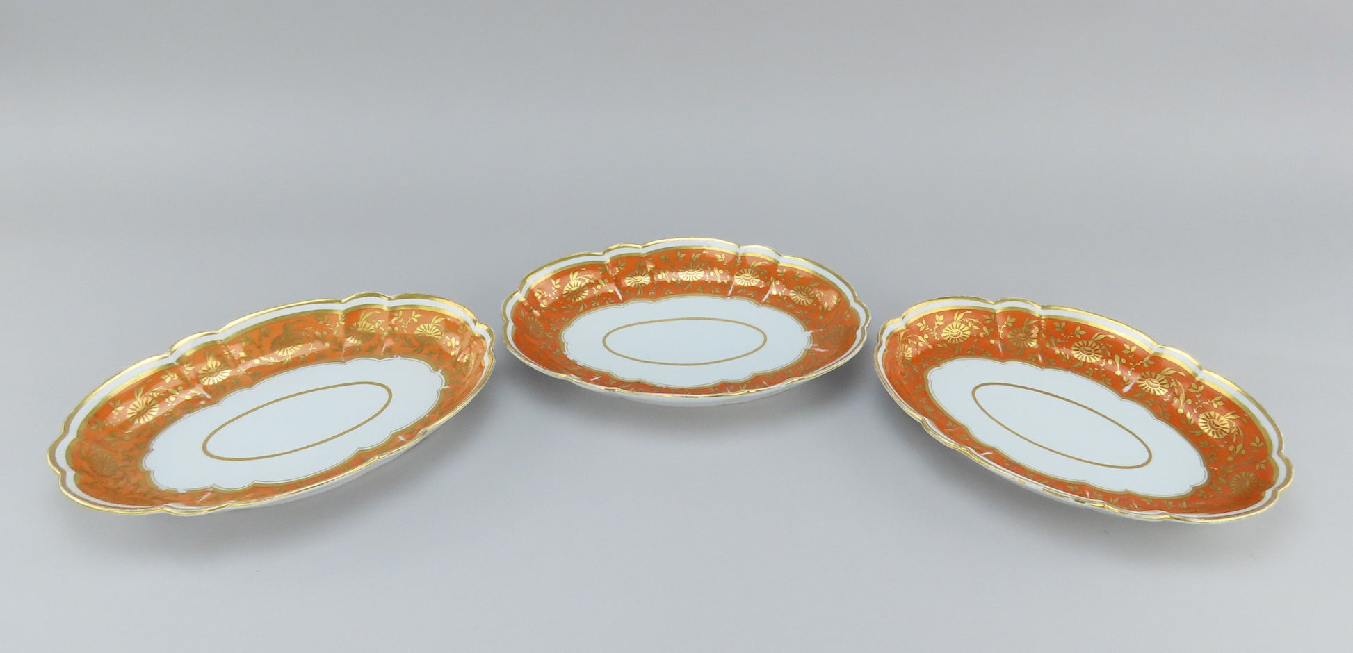 c1810 Barr Flight Barr 3pc Oval Small Serving Dishes Orange Floral Gilding 11"