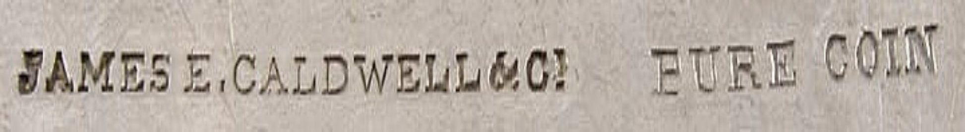 The ladle is hallmarked on the back of the stem with James E. Caldwell & Co. Pure Coin. The ladle is in good condition and only shows minor signs of wear and a single minor dent the bowl. There are no cracks, no breaks, no monograms, no monogram removals, no repairs, and no problems of any kind.