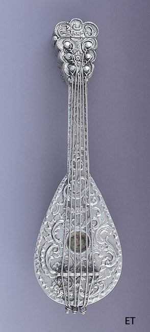 c1850-1900 German? Silver Lute Shaped Perfume Scent Bottle